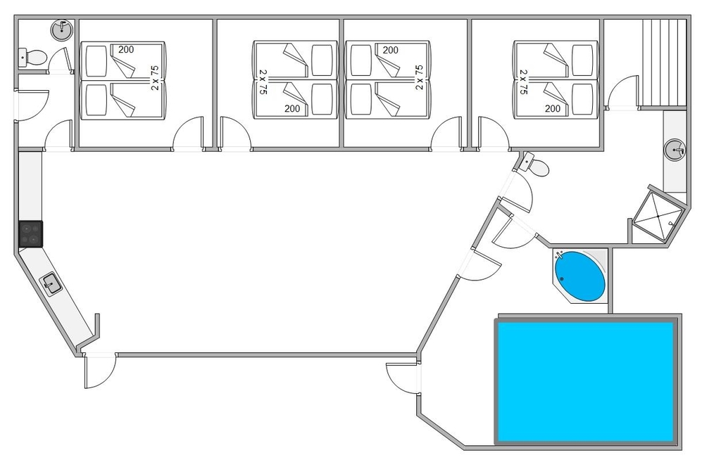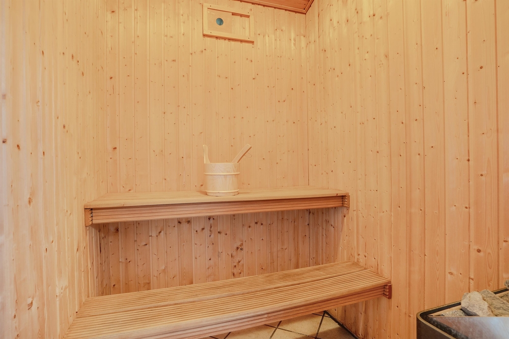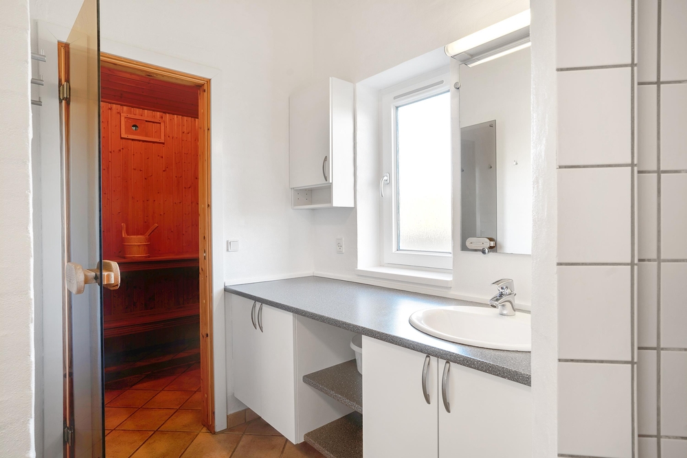 Von dem Wohnzimmer aus könnt ihr ohne Probleme den Pool im Auge behalten, während die Kinder im Pool spielen. Der Pool und Whirlpool sind perfekt an kühlen Tagen, wenn die Wassertemperaturen im Meer noch kein Plantschen zulassen. Erwärmt eure müden Muskeln im Whirlpool oder in der Sauna, die sich direkt im großen Badezimmer befindet.