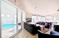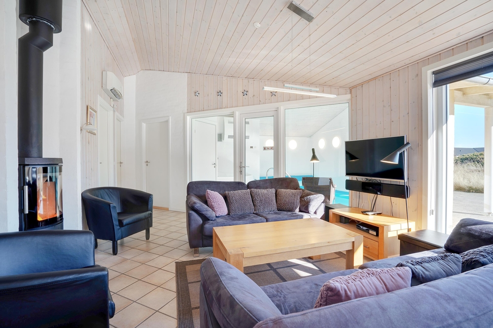 Dicht bei Hvide Sande, in dem populären Feriengebiet Årgab ? und nur 100 Meter vom Nordseestrand entfernt, liegt dieses gemütliche Ferienhaus mit Pool, Whirlpool, Sauna und Kaminofen. Das Sommerhaus bietet Platz für 8 Personen und ist somit ideal für große Familien oder 2 Familien, die gerne ihre Ferien zusammen verbringen möchten.