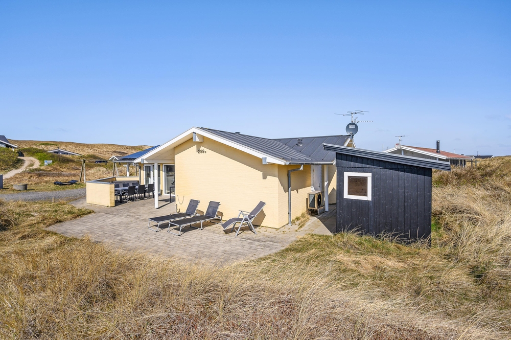 Die Adresse des Ferienhauses ? Tingodden 299C ist nur 100 Meter vom breiten Nordseestrand entfernt und ist somit perfekt für einen Strandurlaub geeignet. Die Südwestterrasse lädt zum Verweilen ein, während die Kinder schaukeln und sich im Sandkasten vergnügen.
