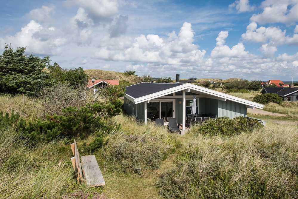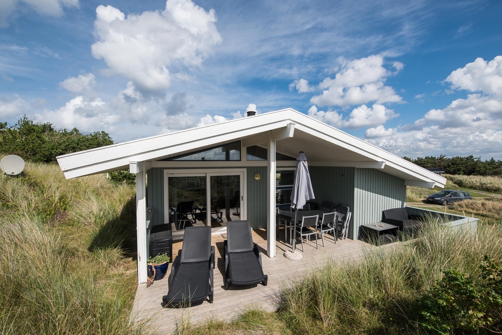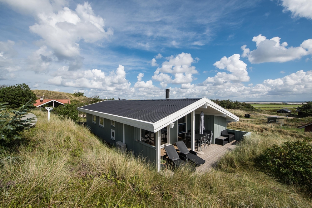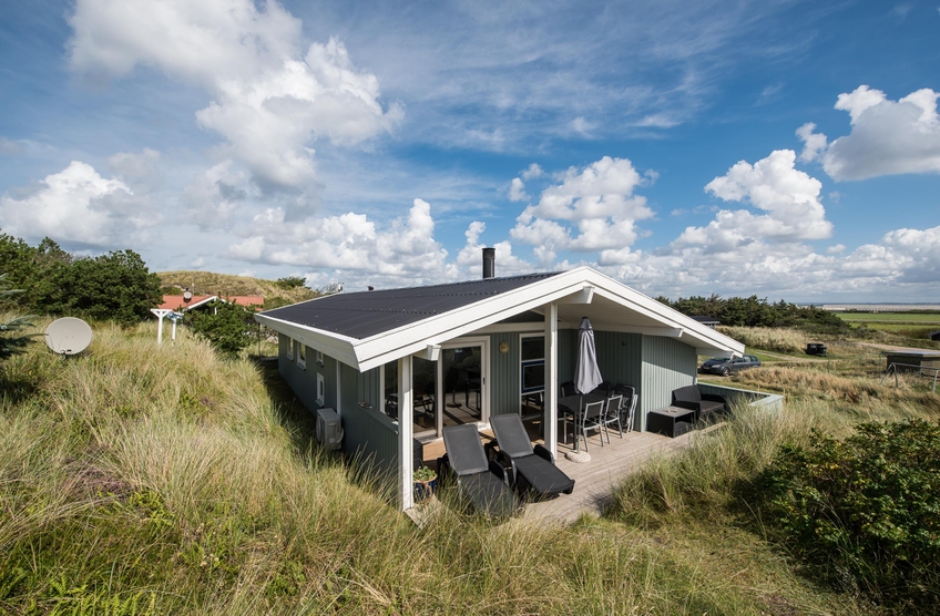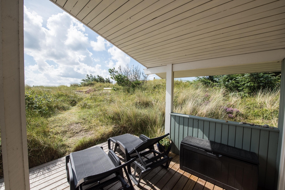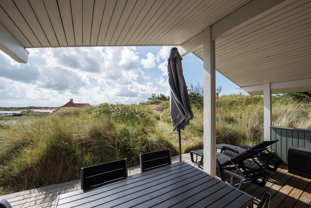 Da das Ferienhaus auf einem erhöhtem Dünengrundstück liegt, habt ihr von hier einen großartigen Blick auf den Fjord und die Landschaft. Und dank der überdachten Terrasse könnt ihr auch bei schlechtem Wetter und Wind draußen sitzen oder abends mit der Familie grillen und den Tag entspannt ausklingen lassen.