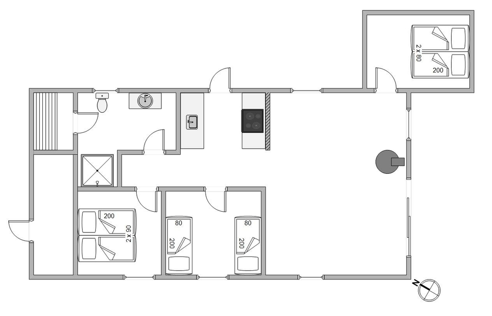 Das Sommerhaus verfügt über alles, was man für einen erholsamen Urlaub benötigt. Die praktisch ausgestattete Küche wurde offen zum Ess- und Wohnbereich gestaltet, damit ihr auch beim Kochen am Familienleben teilnehmen könnt.