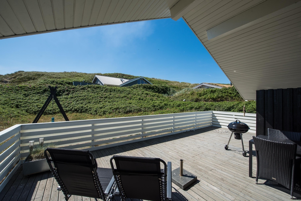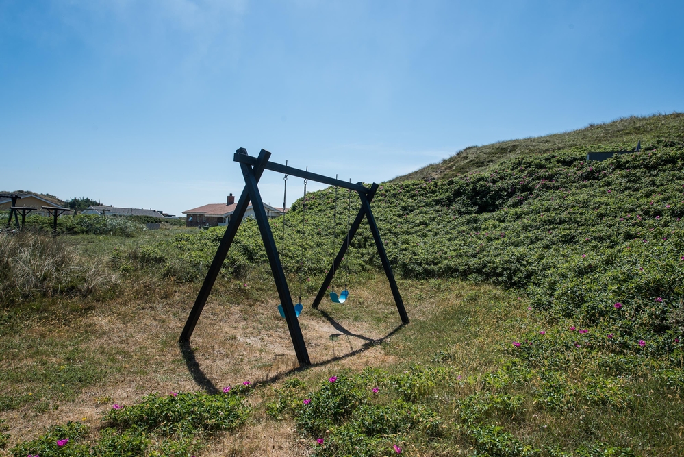 Vom Wohnraum aus habt Ihr Zutritt zur abgeschirmten, teilweise überdachten Terrasse, die mit guten und bequemen Gartenmöbeln ausgestattet ist. Beim Sonnenbaden könnt Ihr die schneeweissen Möwen am tiefblauen Himmel beobachten, während das Meeresrauschen der nahe gelegenen Nordsee an Eure Ohren dringt. Zur Freude der jüngsten Gäste stehen Schaukeln zur Verfügung und natürlich gibt es reichlich Sand zum Buddeln.