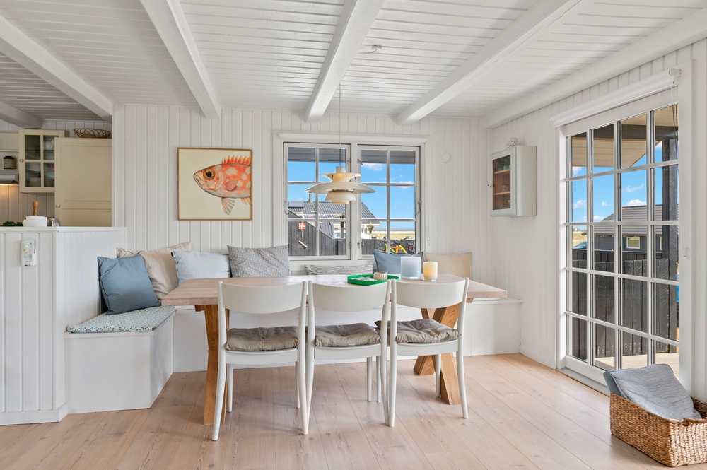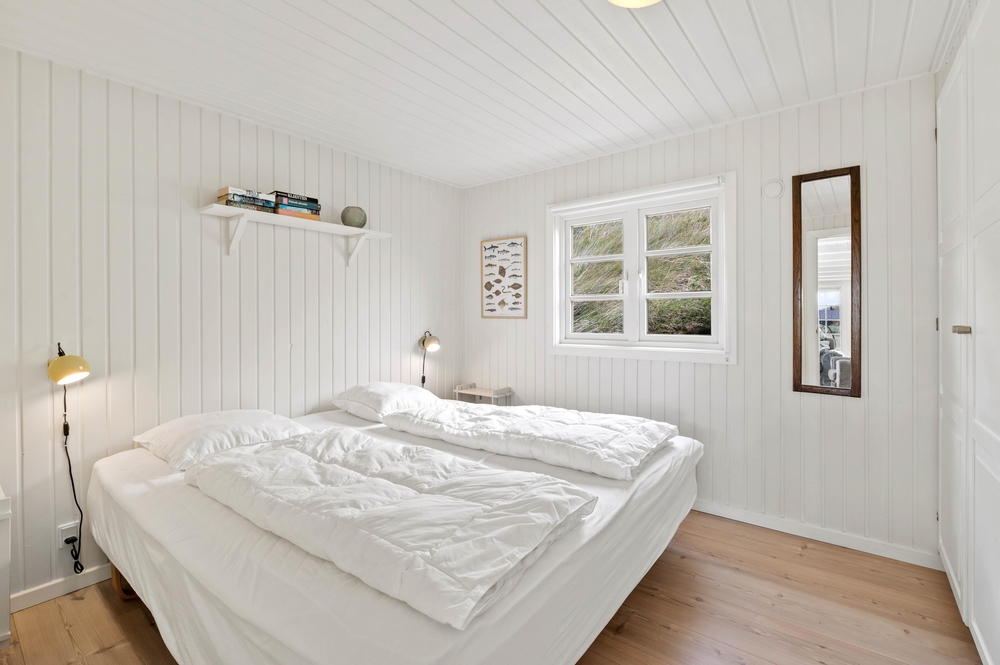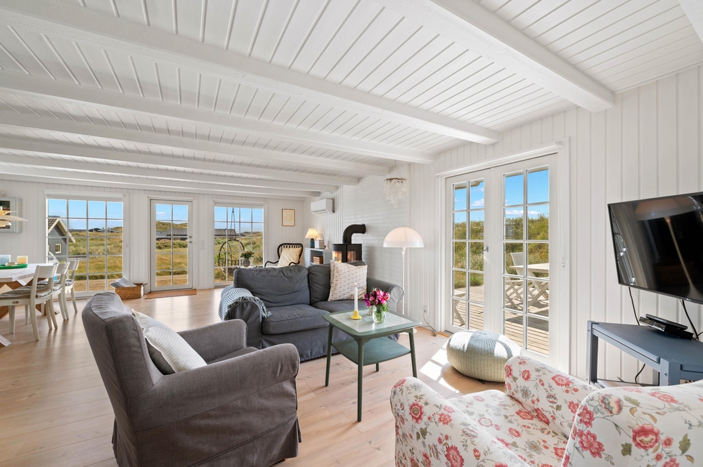 Das schöne Holzhaus strotzt nur so vor Charme, wie es so daliegt, eingebettet in die herrliche Dünenlandschaft mit der tollen Aussicht über den Ringkøbing Fjord. Das Ferienhaus präsentiert sich hell und freundlich mit einer Fülle an liebevollen Details.