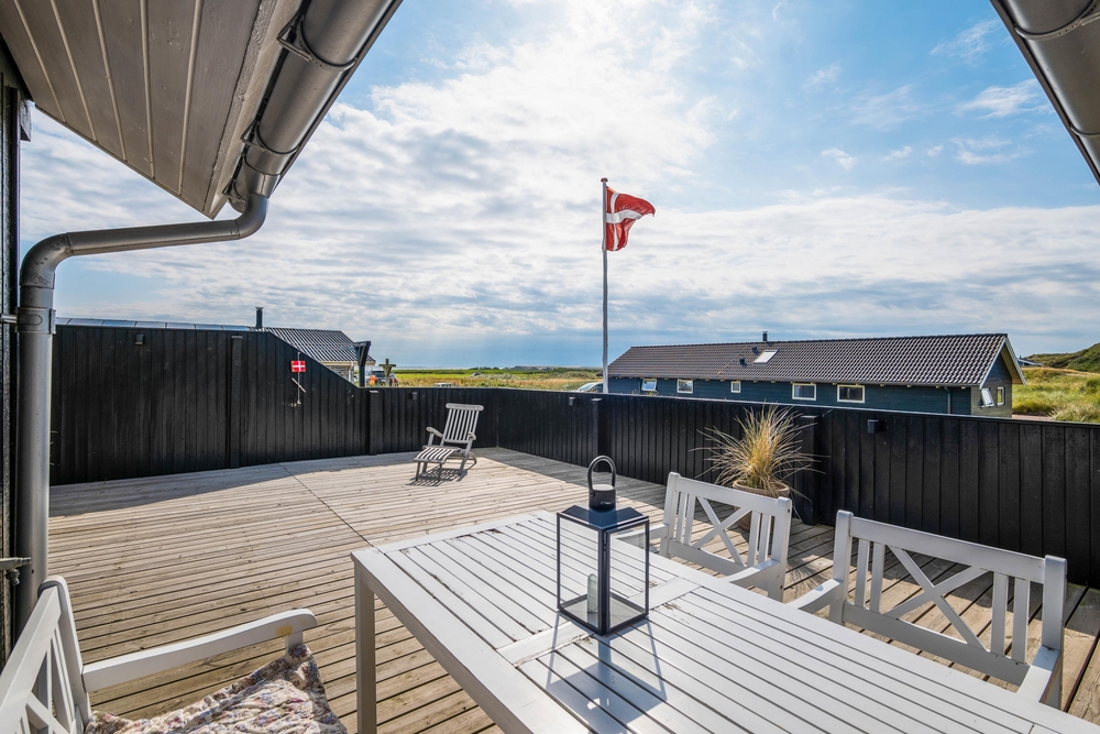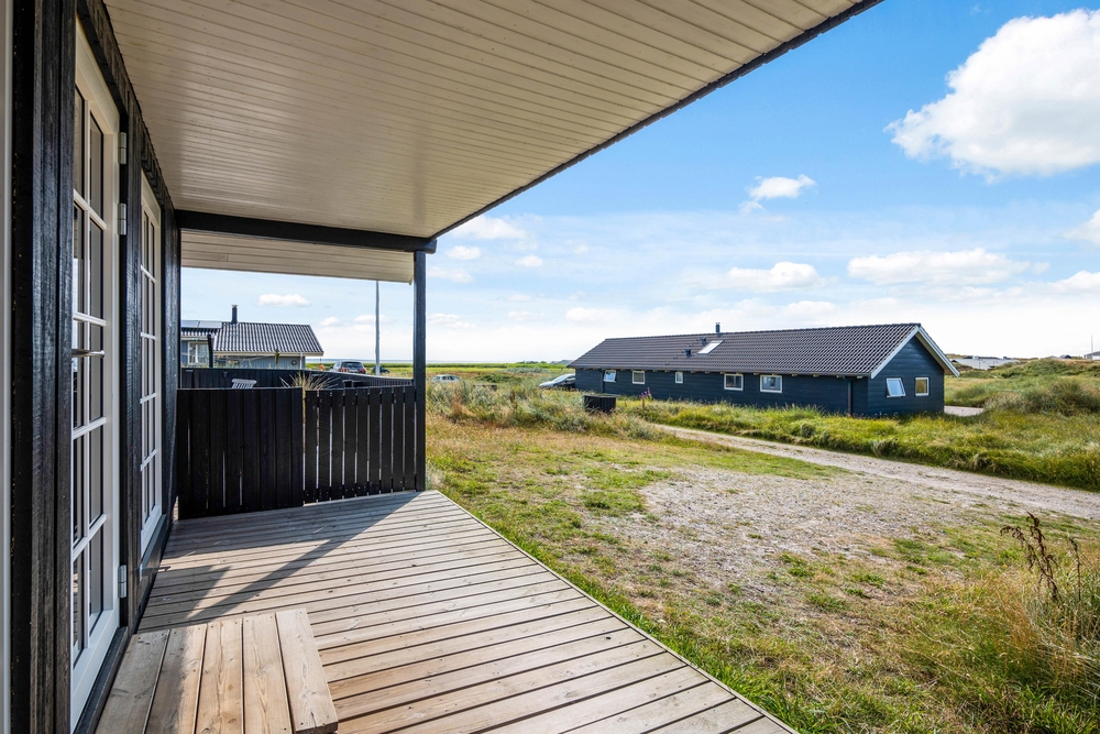 Das gemütliche Ferienhaus liegt auf einem fantastischen Dünengrundstück mit einer herrlichen Aussicht über den Ringkøbing Fjord. Rundherum zieht sich eine schöne gut abgeschirmte und teilweise überdachte Terrasse. Ihr könnt dem Verlauf der Sonne folgen und werdet immer ein sonniges Plätzchen finden. Entspannt Euch und geniesst die herrliche Aussicht auf den Fjord.