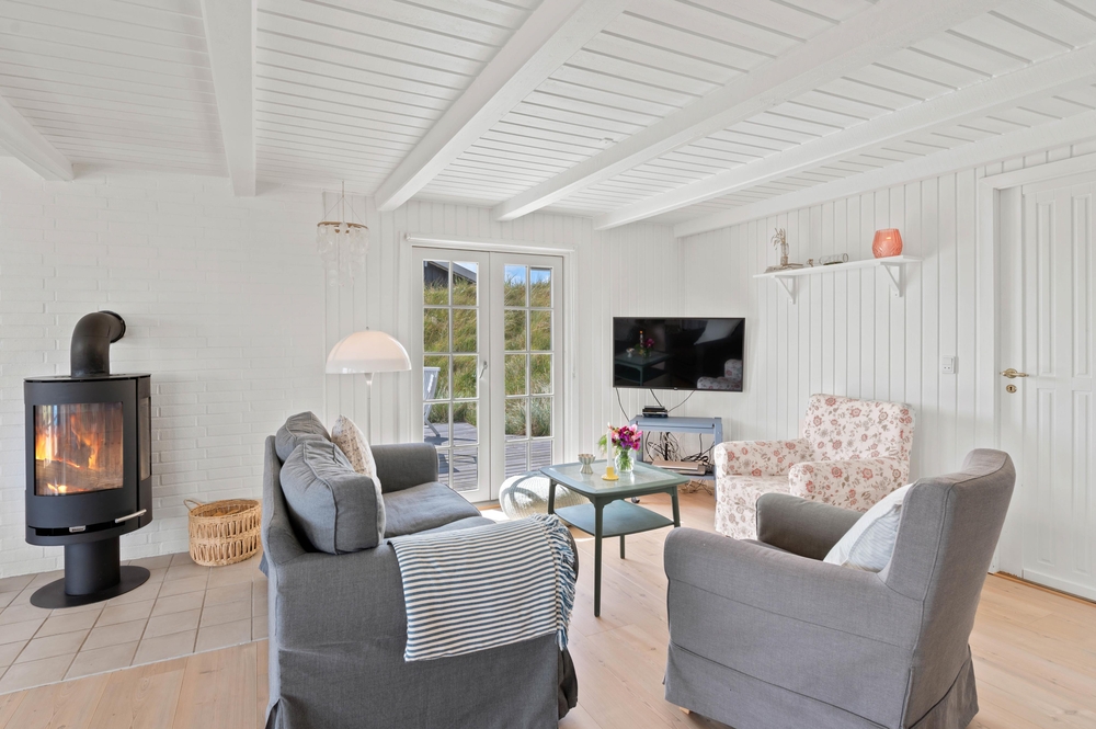 Die hellen Holzdecken und Wände versetzen Euch schon beim Betreten des Hauses in eine angenehme Ferienstimmung. Abends könnt Ihr es Euch vor dem knisternden Kaminofen gemütlich machen, der eine wohlige Wärme verbreitet, während sich draussen die Dunkelheit über den Fjord und die Dünenlandschaft senkt. Bitte beachtet, dass die Auswahl an deutschen Fernsehprogrammen beschränkt ist.