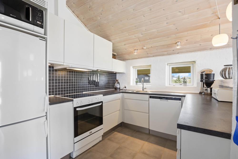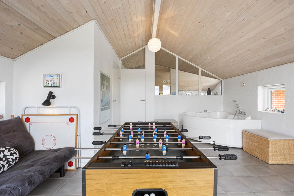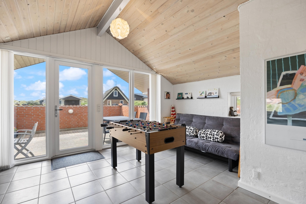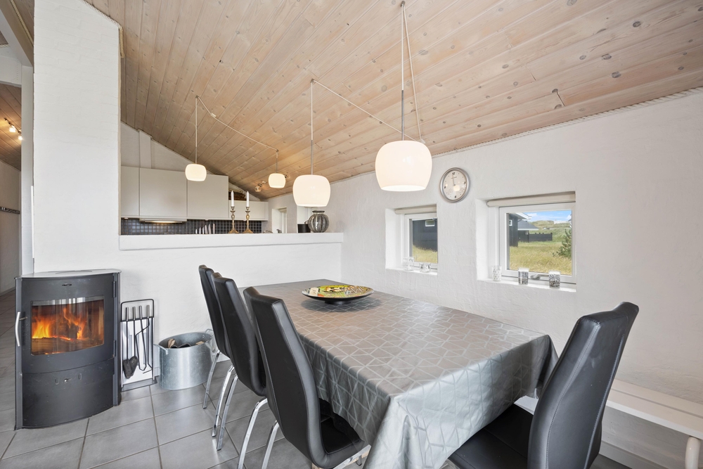 Das Ferienhaus liegt nah am Ringkøbing Fjord und nur 150 Meter von der Nordsee entfernt. Hier könnt Ihr lange Spaziergänge am Strand machen und sich den Wind um die Ohren pusten lassen. Nach dem Spaziergang könnt Ihr es euch vor dem Holzofen gemütlich machen.