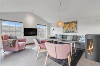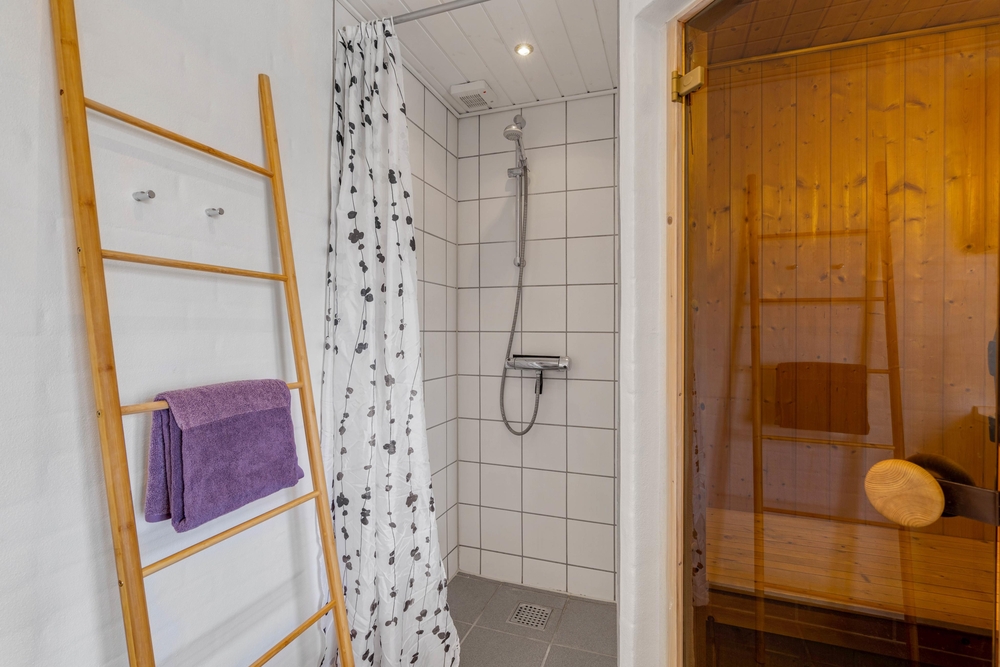 Im Wohnbereich gibt es genug Sitzplätze für die ganze Familie. Hier könnt Ihr es euch abends vor dem Flachbildschirm-TV und dem Kamin gemütlich machen. Das Ferienhaus verfügt über 2 Badezimmer, beide mit Fußbodenheizung und Duschkabine.