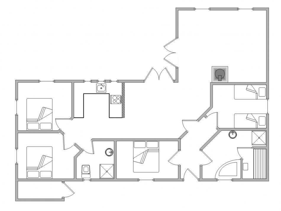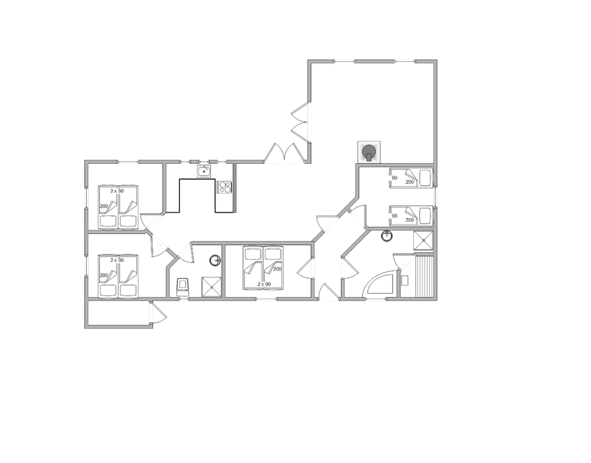 Das Haus besitzt 4 Schlafzimmer, in denen bis zu 8 Personen unterkommen können. In 3 der Schlafzimmer stehen Doppelbetten und in dem letzten Zimmer stehen 2 Einzelbetten.