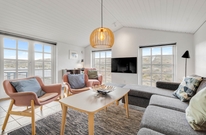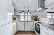 Ein schönes Ferienhaus mit heller und stilvoller Einrichtung. Die Küche ist mit einer Mikrowelle, Geschirrspüler, Kühlschrank und Gefrierfach ausgestattet. Sie wurde offen zum Essbereich gestaltet und durch die hohen Decken und den sichtbaren Balken erscheint der Raum gleich viel geräumiger.