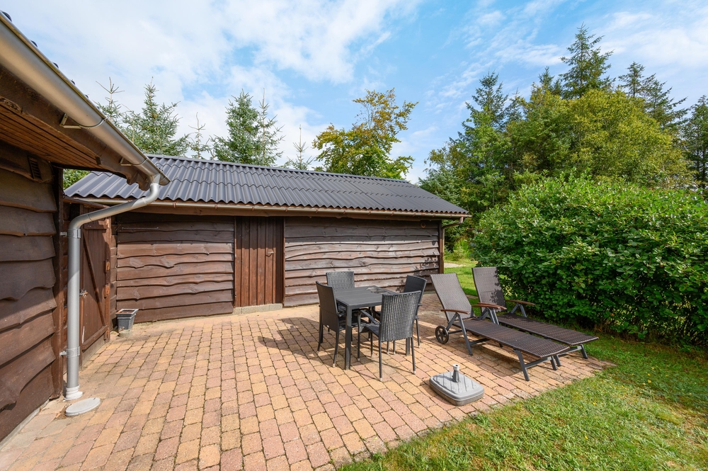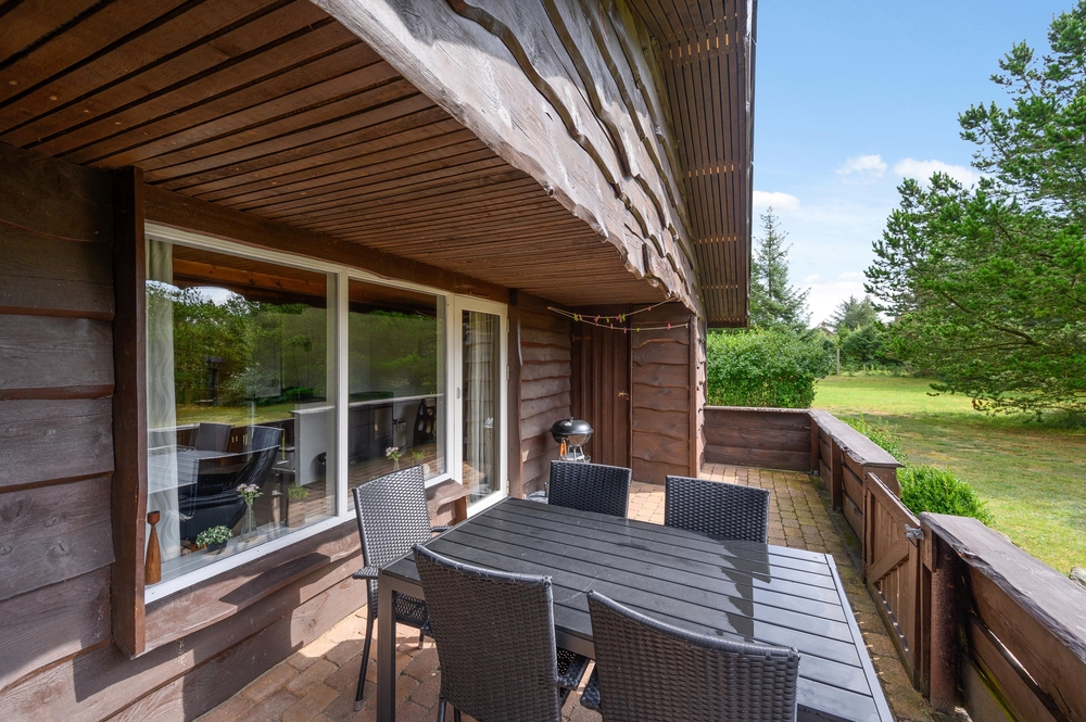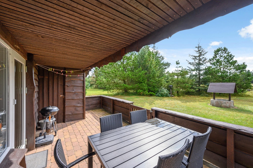 Eine geschlossene und teilweise überdachte Terrasse erreicht ihr über die Terrassentür aus dem gemütlich eingerichtetem Wohnzimmer heraus. Hier könnt ihr es euch in der Sonne bequem machen und während der Hobbykoch der Familie entweder in der kleinen Küche oder auf dem Grill ein leckeres Essen zubereitet, legt ihr die Beine hoch und haltet die Nase in die Sonne.