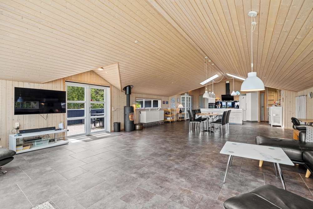 Die besondere Architektur, mit lichtdurchfluteten, hohen Räumen und einer gemütlichen Einrichtung laden zum Wohlfühlen ein. Das Herz des Hauses ist der großzügige Wohn- Essbereich mit offener Küche. Hier ist genügend Platz für gemütliche Stunden vor dem knisternden Kaminfeuer, zum gemeinsamen Kochen oder für einen lustigen Spieleabend. Das Highlight ist das große, runde Panoramafenster mit einem traumhaften Ausblick über die Bucht von Ho, oder in den Sternenhimmel. Der gesamte Wohnbereich hat übrigens eine Fußbodenheizung.