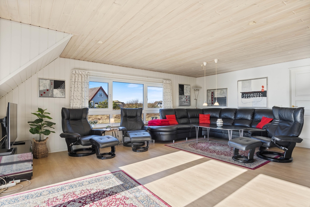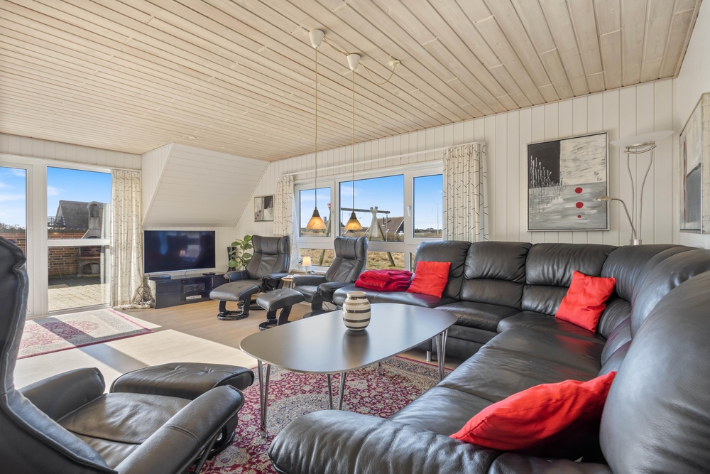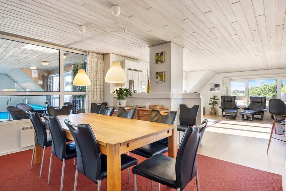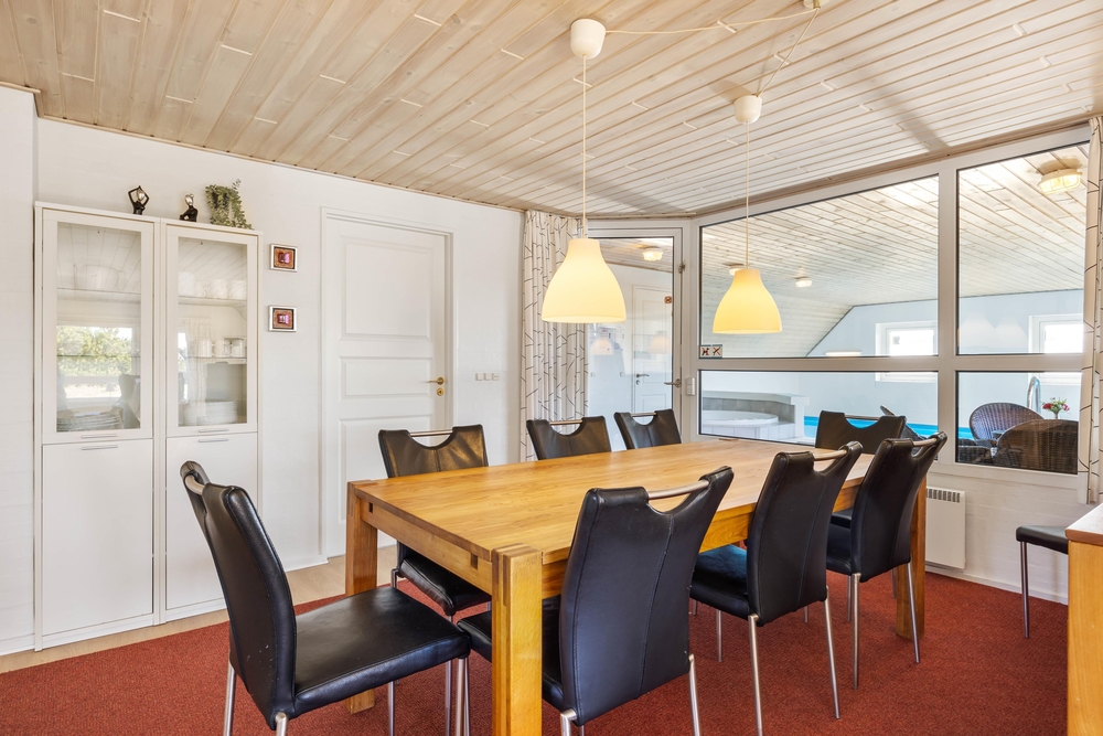 In diesem schönen Ferienhaus im Toppebjerg 1 an der dänischen Westküste, könnt ihr mit bis zu 10 Personen und 2 Hunden Urlaub machen. Hier ist Platz für die große Familie, und der Swimmingpool mit Gegenstromanlage ist eine Freude für Jung und Alt. Neben dem Pool bietet das Ferienhaus auch einen großen Standwasser-Whirlpool. Das Ferienhaus ist energieeffizient eingerichtet mit Wärmepumpen und zusätzlicher Isolierung.