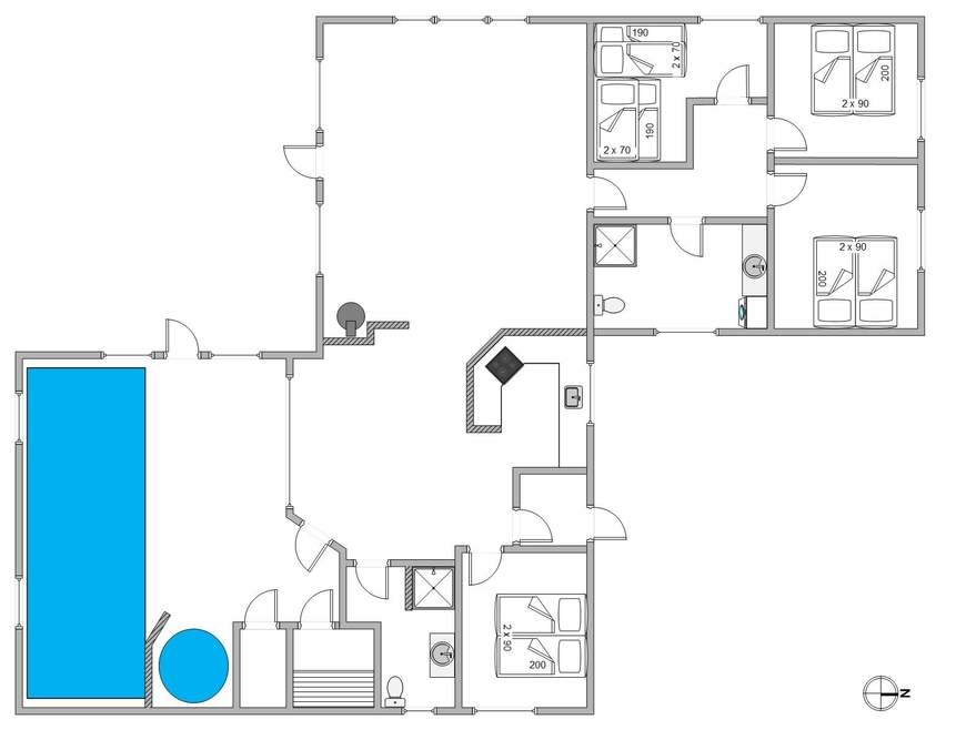 Ihr müsst nicht den ganzen Tag im Pool mit den Kindern verbringen, denn das Ferienhaus ist so eingerichtet, dass ihr den Wellnessbereich im Auge behalten könnt, während ihr euch im Wohnbereich des Ferienhauses aufhaltet. Das Ferienhaus ist mit energieeffizienten Wärmepumpen ausgestattet und zusätzlich gut isoliert, sodass die Stromrechnung nicht zu hoch ausfällt.