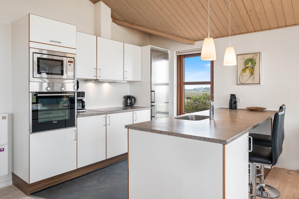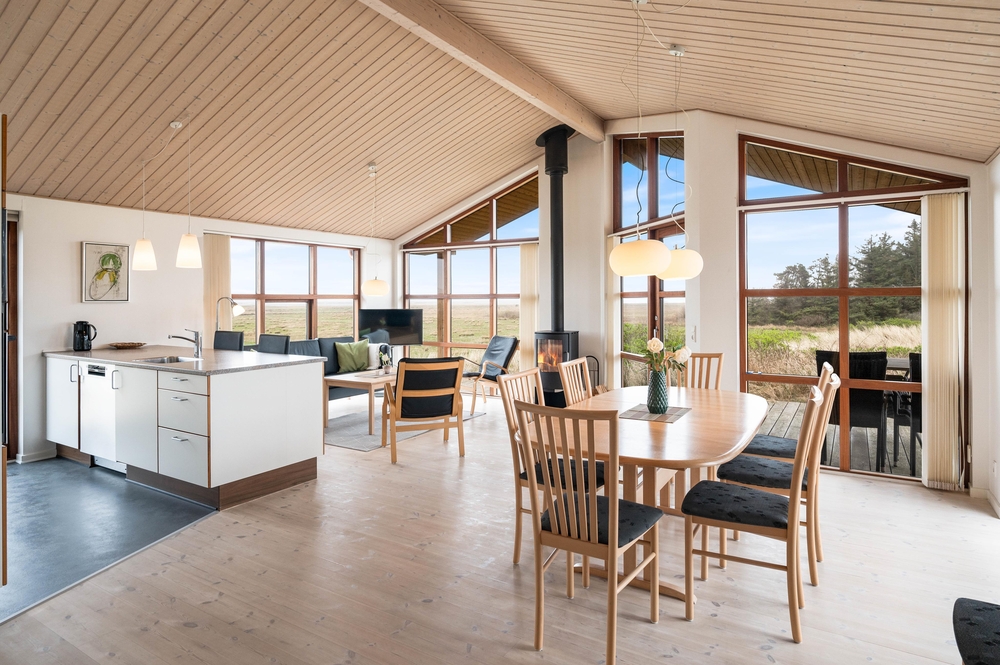 Wenn ihr nicht jeden Tag den Kamin anwerfen wollt, steht euch aber auch eine energiesparende Wärmepumpe zum Heizen zur Verfügung. Die offene und gut ausgestattete Küche eignet sich perfekt, um leckere Gerichte zu kochen. Probiert doch auch mal ein typisch dänisches Rezept aus. Nach einem gemeinsamen Essen könnt ihr den Urlaubstag mit einem Spieleabend ausklingen lassen.