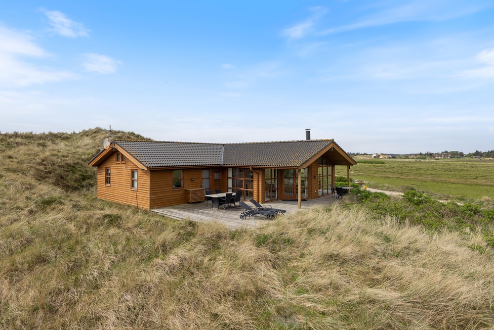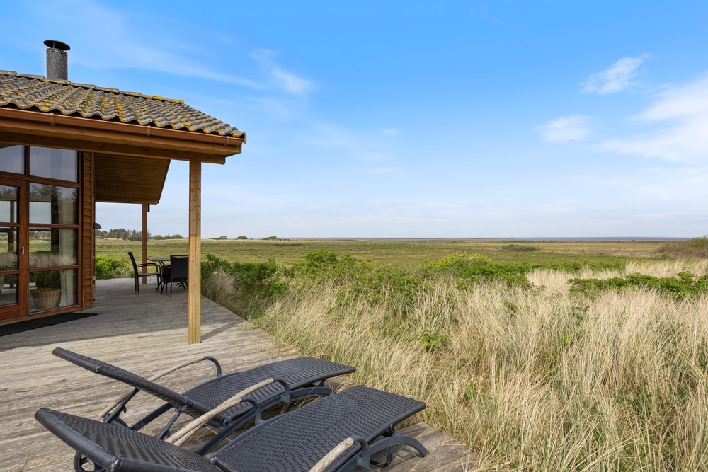 Euer schönes Ferienhaus liegt auf einem idyllischen, 2000 qm großen, Naturgrundstück in ruhiger Randlage. Dadurch könnt ihr von der teils überdachten Terrasse einen schönen Panoramaausblick Richtung Ringkøbing Fjord genießen. Besonders der Sonnenaufgang ist hier ein tolles Erlebnis. Entspannt euch in den bequemen Gartenmöbeln oder genießt die Sonne auf den Sonnenliegen ? hier könnt ihr die Seele baumeln lassen.