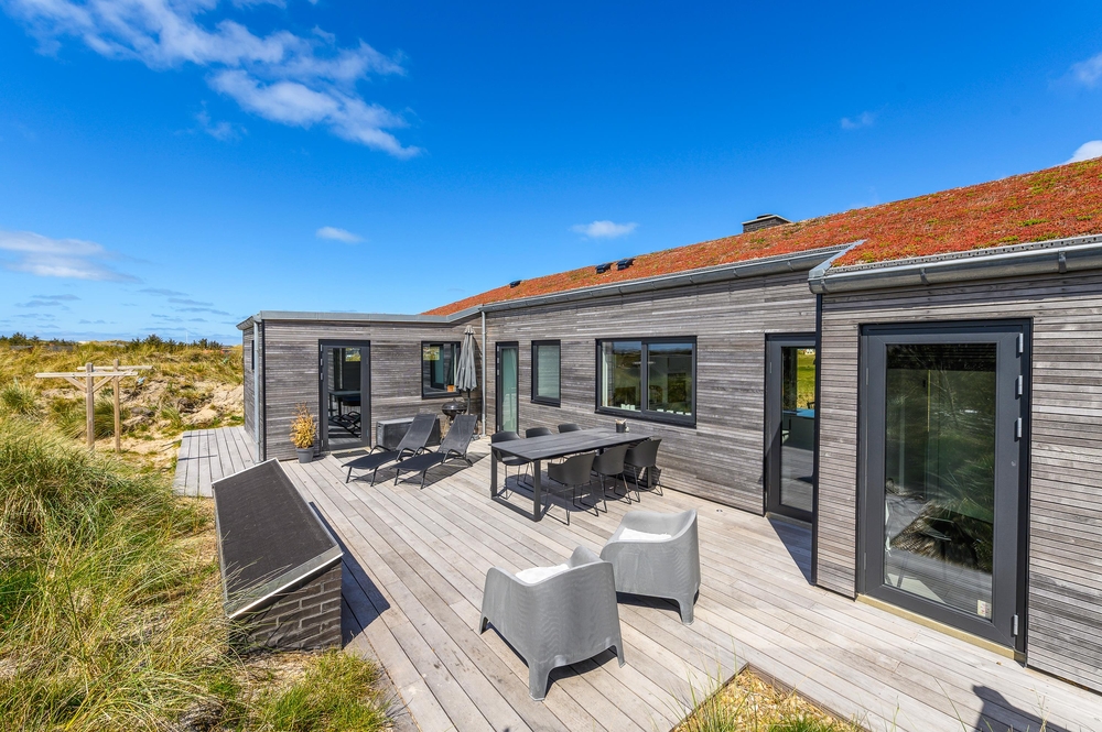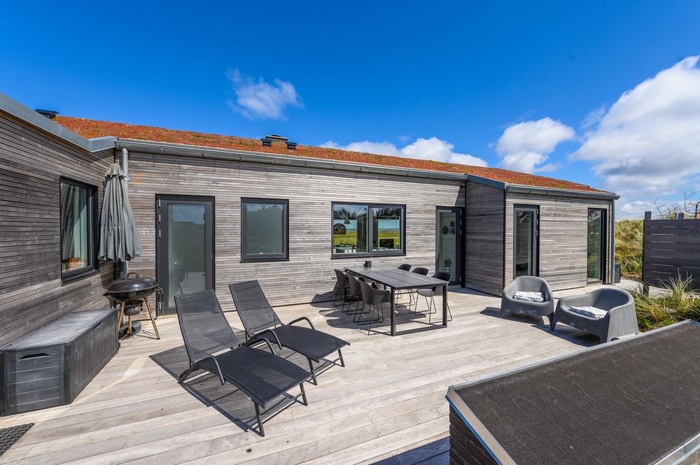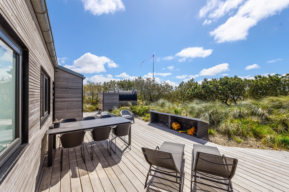 Am Tornbjerrevej 4 gibt es viele geschützte Ecken und da das Ferienhaus auf einer Düne liegt, habt ihr einen schönen Blick über das Dünen- und das Fjordgebiet. Die Gegend hier in Haurvig an der Fjordseite ist einzigartig ? allein die Nähe zum Ringkøbing Fjord. Frühstück auf der Holzterrasse des Nordens, während ihr den Sonnenaufgang über dem Wasser des Fjordes genießt ? einzigartig. Abends auf der Südwestterrasse des Hauses ein schönes Grillabendessen zu genießen, gehört zu den Höhepunkten ? inklusive Sonnenuntergang über den Dünen und im Hintergrund das Rauschen der Nordsee.