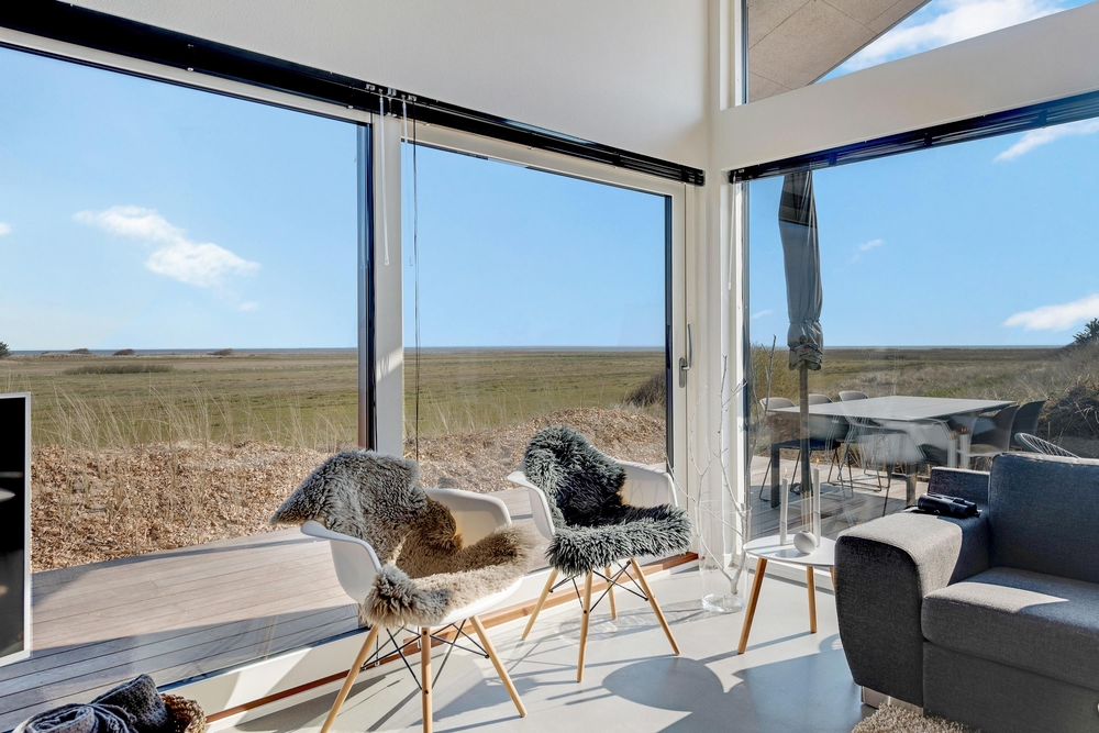 Die vielen großen Fensterabschnitte bieten einen fantastischen Panoramablick und laden sowohl die Sonnenstrahlen als auch die wunderschöne Landschaft in das Ferienhaus ein, so dass ihr euch auch an den etwas kühleren Tagen wie mitten in der Natur fühlen könnt.