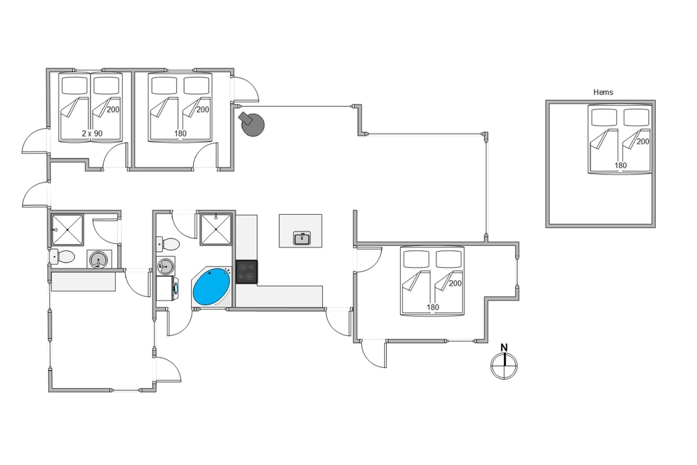 Dieses einzigartige Ferienhaus im Tornbjerrevej 4 bietet Platz für bis zu 6 Urlauber, die in 3 Schlafzimmer mit jeweils einem Doppelbett und auf einem Dachboden mit 2 zusätzlichen Einzelbetten, Platz finden. Hier gibt es auch 2 geschmackvoll eingerichtete Badezimmer, eines davon mit einem Wellnessbereich.
