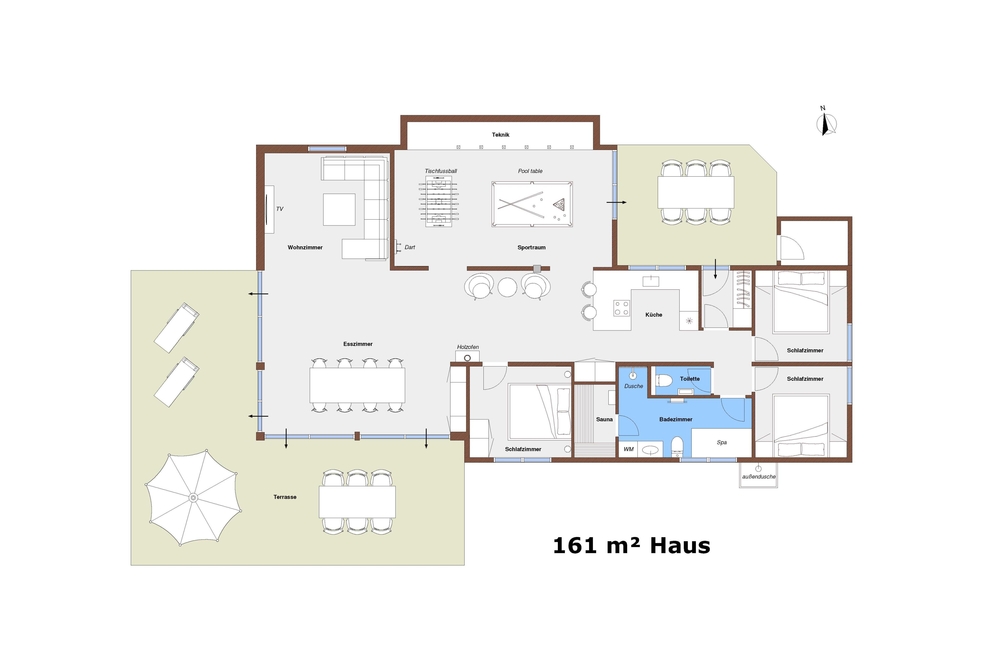 Moderne, helle Gemütlichkeit für bis zu 6 Personen, erwarten euch auf den insgesamt 158 m² im Torskevej 24 in Vejers. Die vielen Fenster sorgen für einen besonders schönen Lichteinfall. Im großzügigen Wohn- Essbereich mit offener Küche trefft ihr euch zum gemeinsamen Kochen, Spielen oder zu einem spannenden Filmeabend. Für die dänische Hygge Atmosphäre darf ein knisterndes Feuer im Kaminofen natürlich nicht fehlen. Für mehr Action würde ein kleines Billard Turnier sorgen. Oder jeder macht einfach das, wozu er gerade Lust hat, denn das ist das Schöne an einem Ferienhaus Urlaub in Dänemark.