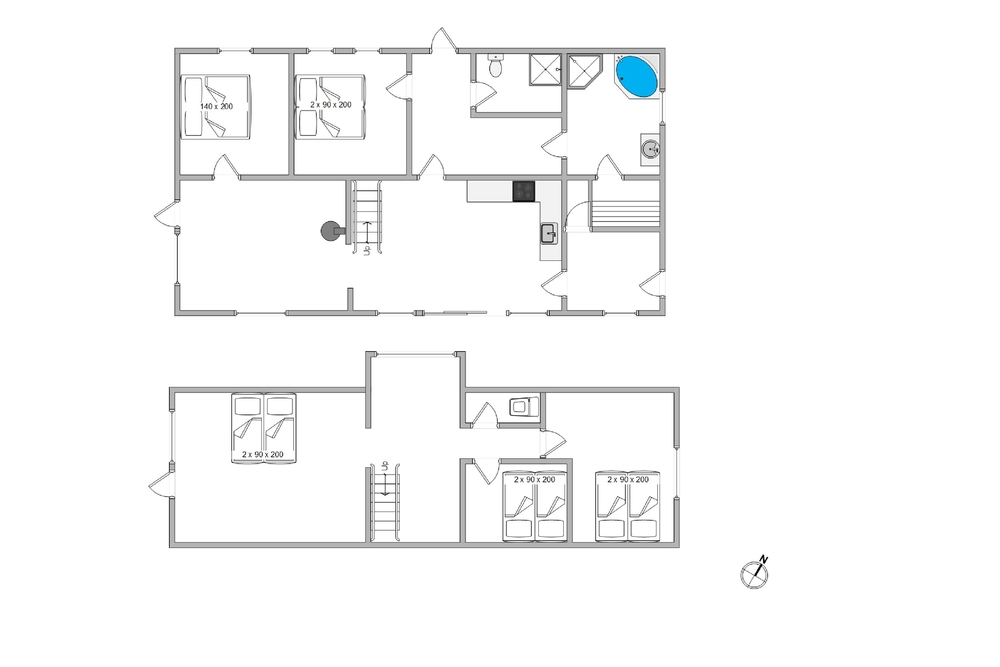 Hier habt Ihr Platz für die ganze Familie. Das große und gut eingerichtete Ferienhaus verfügt über mehrere Wohnzimmer, eine große offene Küche und zwei Badezimmer sowie eine Gästetoilette. Es bietet sich also an, hier mit zwei Familien oder einer großen Familie Urlaub zu machen.