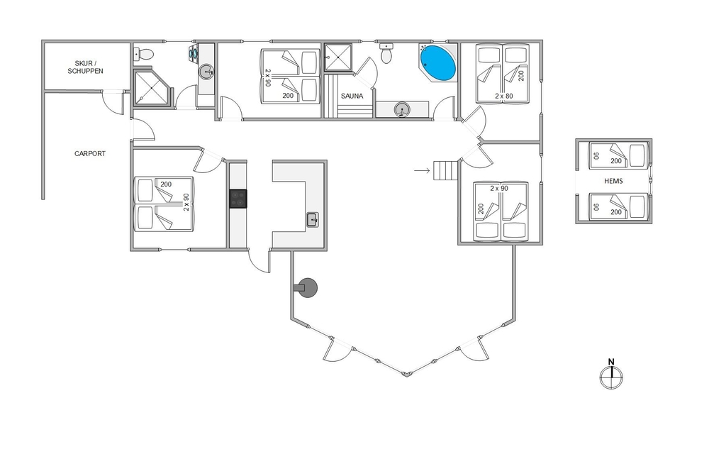 Gleich am Ortseingang vom beliebten Ferienort Henne Strand liegt auf einem großen, offenem Grundstück dieses in 2020 renovierte und mit hochwertiger Einrichtung versehene Sommerhaus. Eine große Familie, auf jeden Fall bis zu 8 Personen, können hier eine schöne und erholsame Zeit mit Sauna und Whirlpool einplanen.