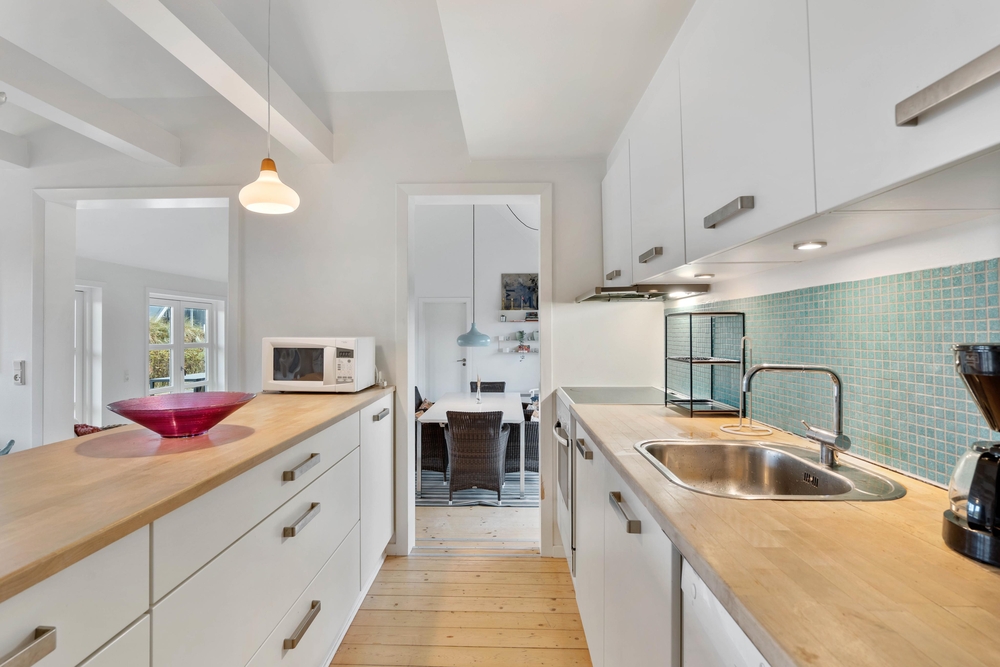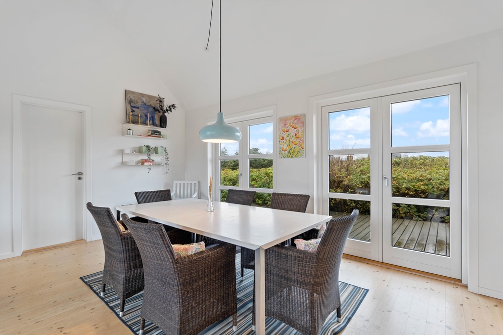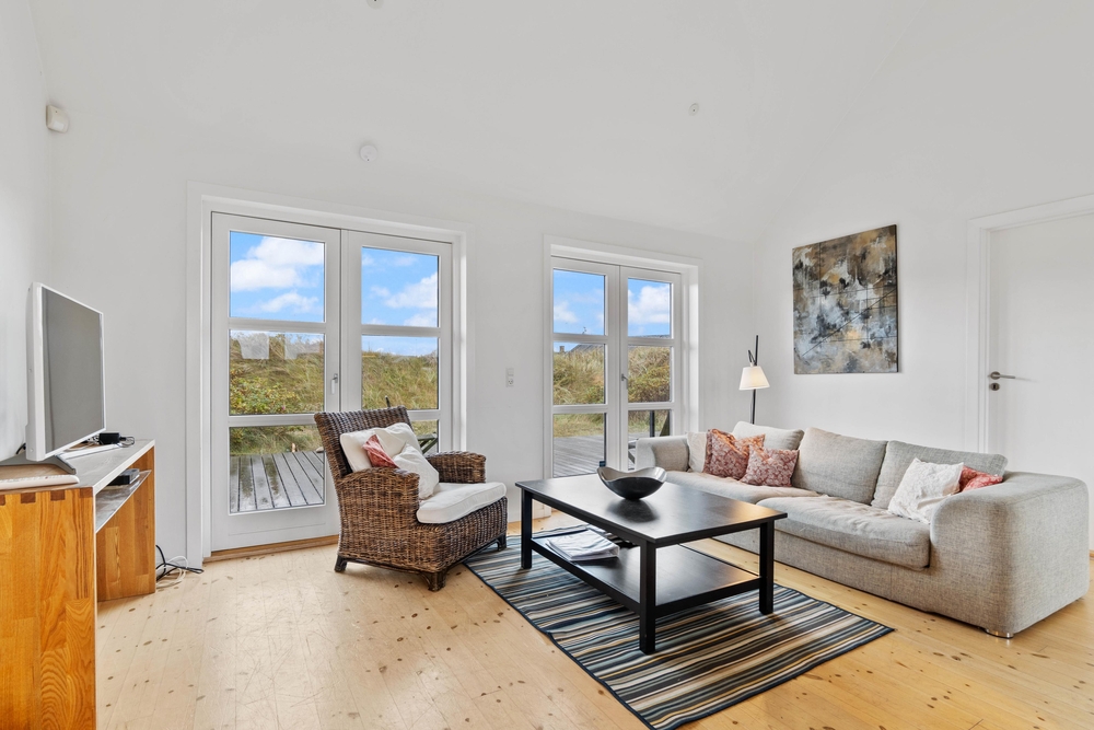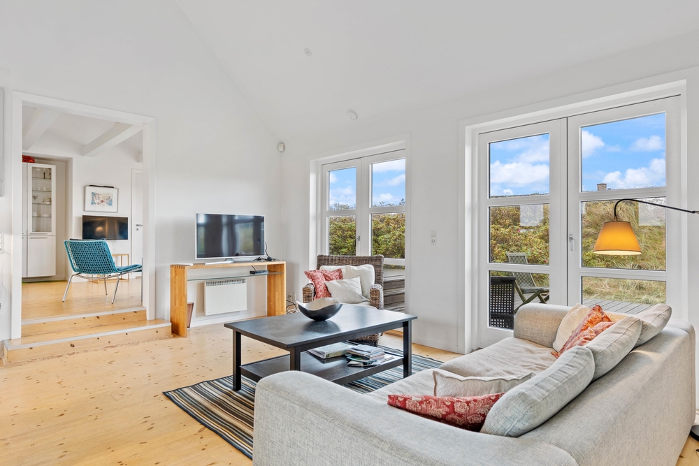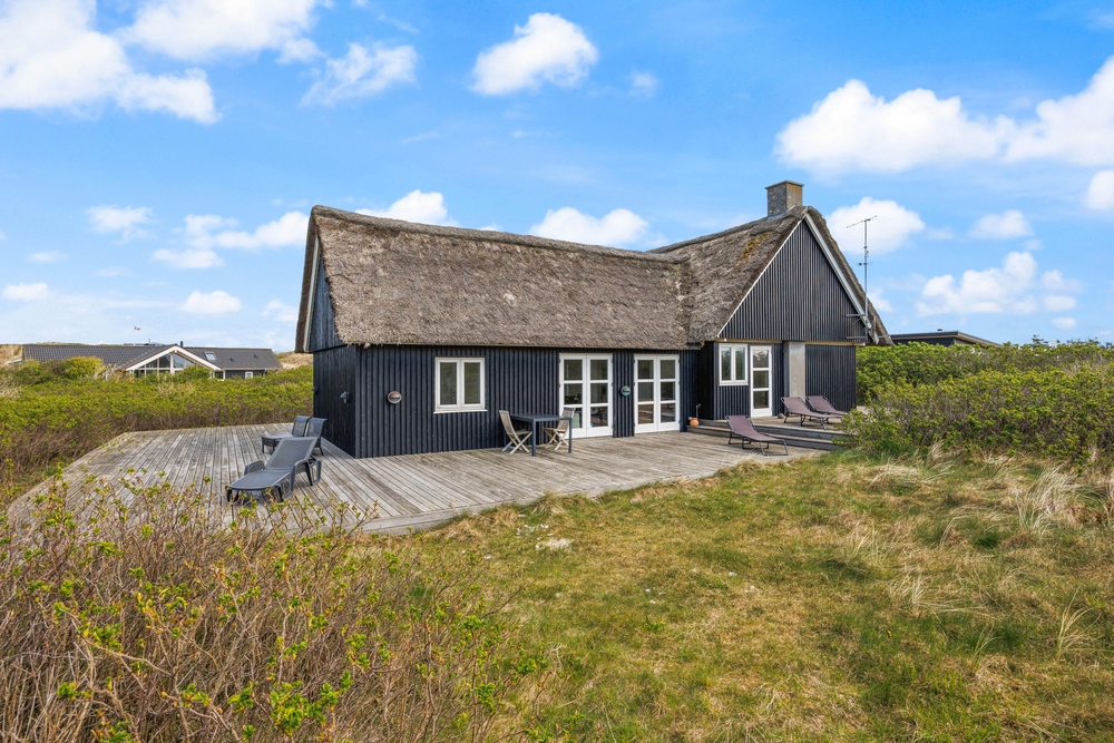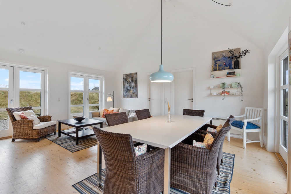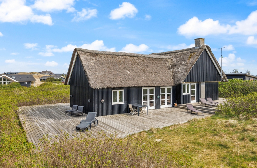 Das reetgedeckte Sommerhaus lädt zu gemütlichen Momenten während eures Urlaubs an der dänischen Westküste ein. Die Küche, das Wohnzimmer und der Essbereich sind hell und offen gestaltet, sodass ihr viele verschiedene Dinge gemeinsam unternehmen könnt.