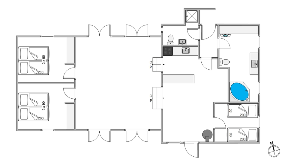 Auf den 118 m2 des Ferienhauses erwarten euch insgesamt 3 Schlafzimmer, 1 Badezimmer sowie 1 Gäste-WC. Badezimmer und Gäste-WC sind mit einer Fußbodenheizung versehen.