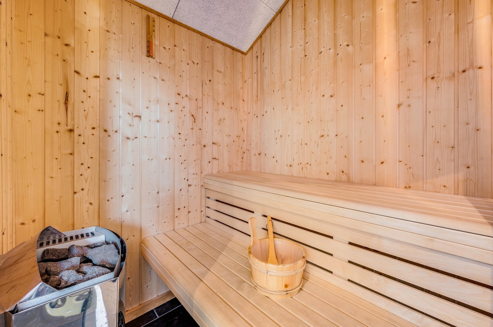 Im schönen und hellen Badezimmer könnt ihr euch euren eigenen Wellnessmoment schaffen. Es gibt eine herrliche Sauna und einen in den Boden eingelassenen Whirlpool mit Kopfstütze, ideal um sich nach einem langen Tag zu entspannen. Die installierte Musikanlage im Badezimmer kann die Momente der Entspannung zudem mit harmonischer Musik untermalen. Zusätzlich gibt es eine Gästetoilette mit Dusche, Waschmaschine und Trockner.