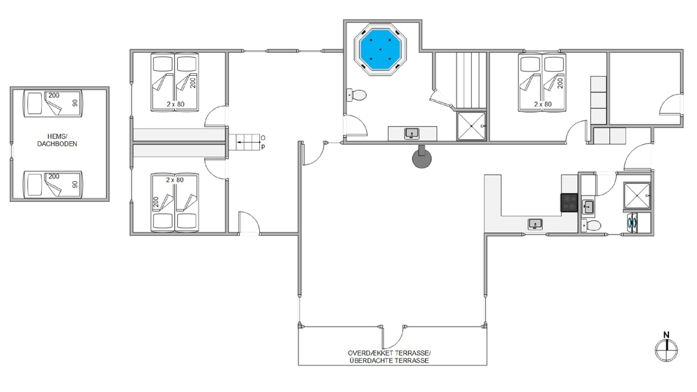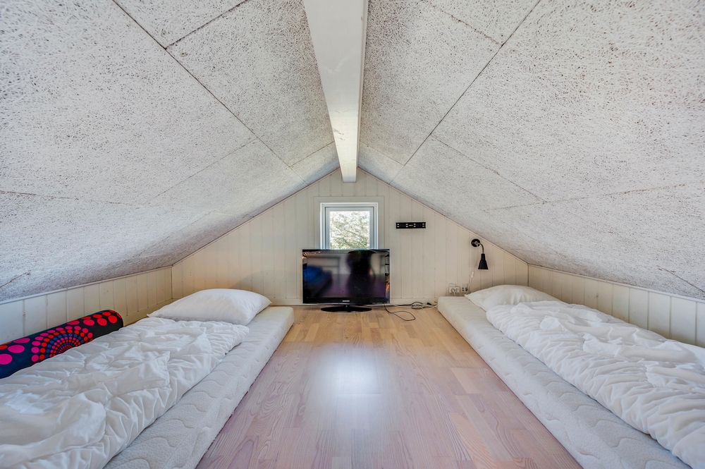 Das Ferienhaus bietet Platz für insgesamt 8 Personen ? aufgeteilt in 3 Schlafzimmer und einen Schlafboden. Alle Schlafzimmer sind mit jeweils einem Doppelbett ausgestattet, während der Schlafboden mit zwei Einzelmatratzen versehen ist, die auf Wunsch zusammengelegt werden können. Der Schlafboden ist über eine Leiter im Aktivitätsraum erreichbar.