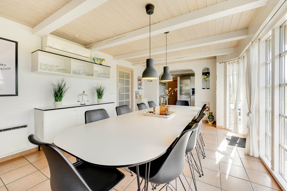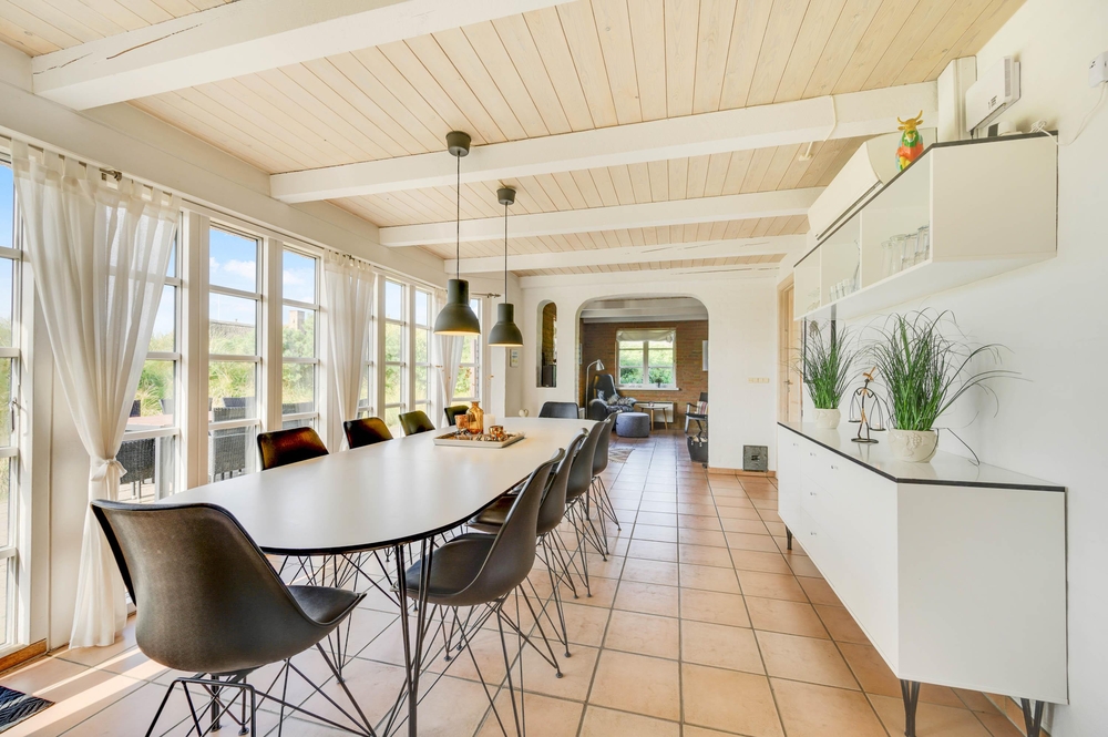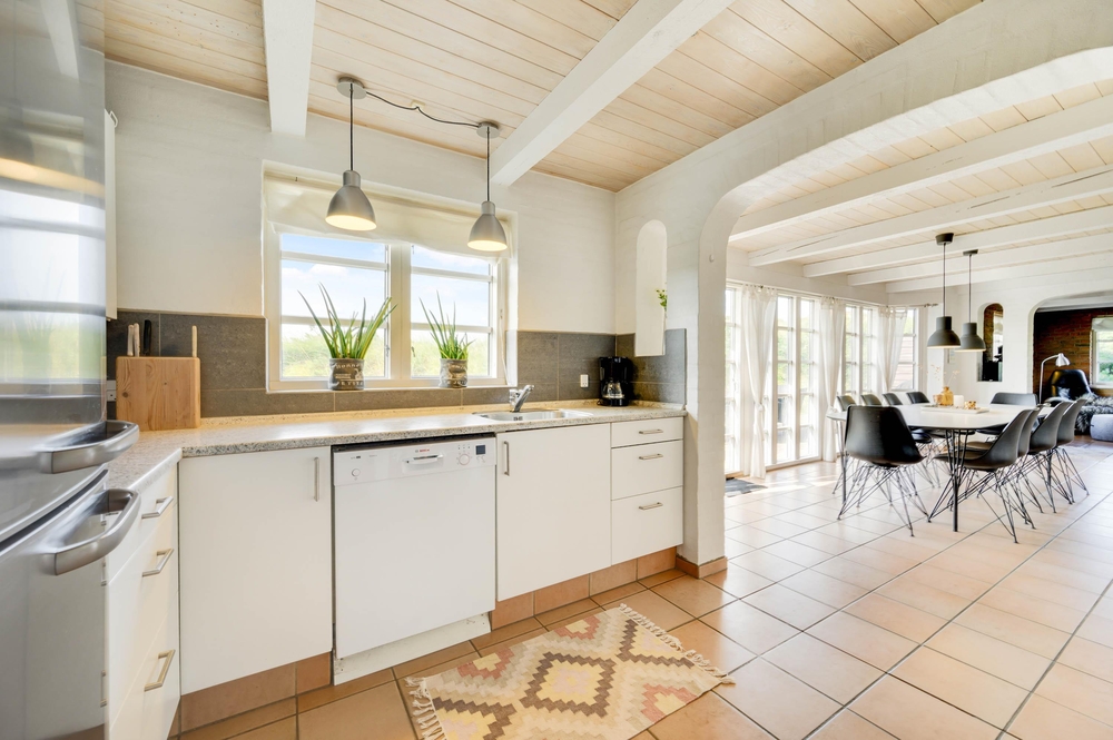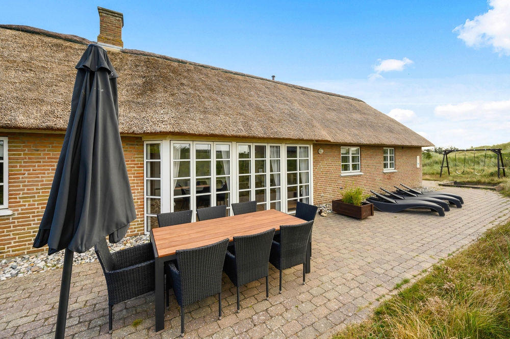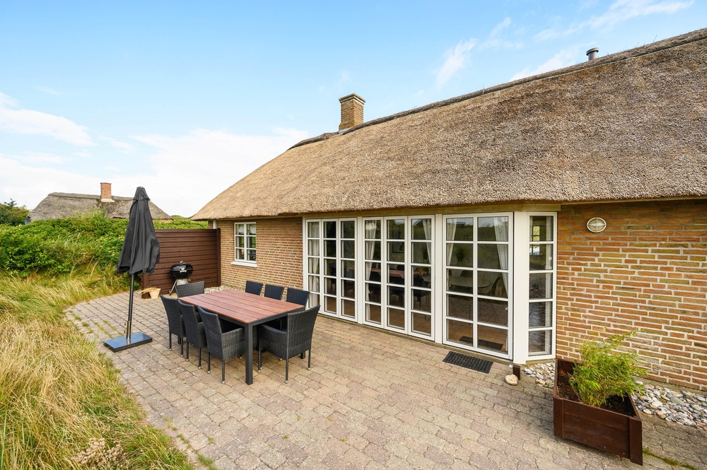 Ein gemütliches Ferienhaus mit Reetdach, modern eingerichtet und mit authentischer Ferienhausstimmung ist euer Wunsch? Schicke Details, wie sichtbares Mauerwerk und freiliegenden Balken, sodass in Verbindung mit den modernen Möbeln der richtige Rahmen für Familienferien geschaffen wird, wo die Qualität der gemeinsamen Zeit im Fokus steht, zeichnen dieses Ferienhaus aus.