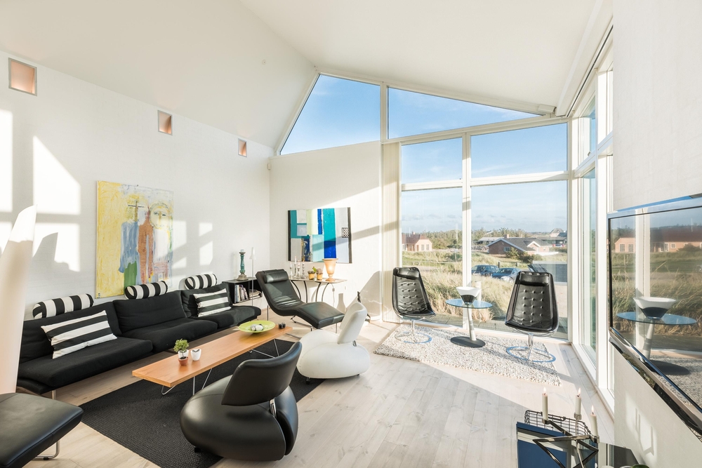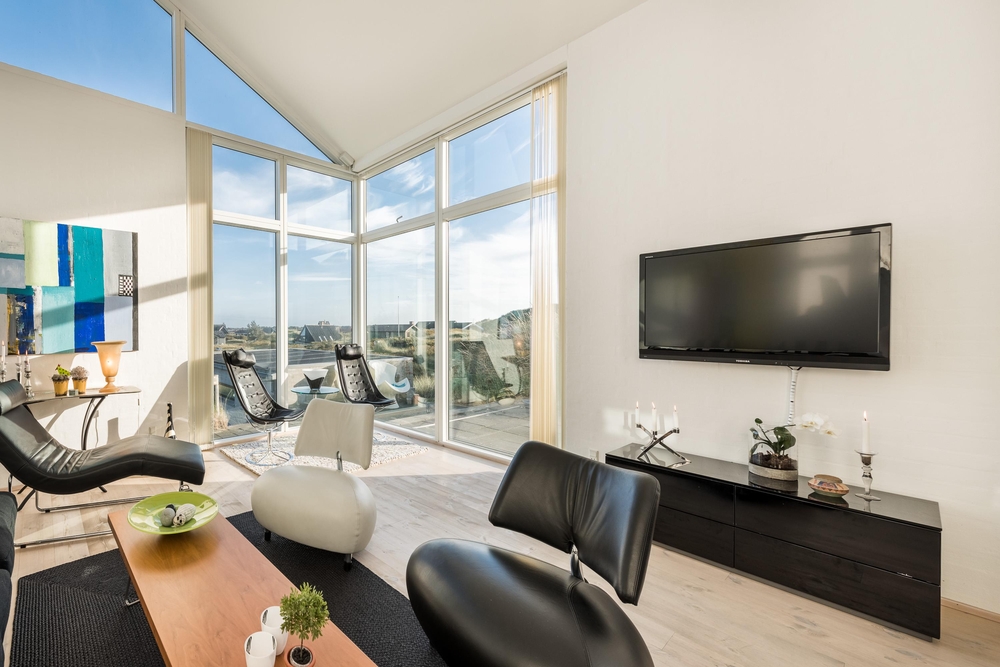 Die moderne Einrichtung wurde aufeinander abgestimmt, damit ihr euch gleich wie Zuhause fühlt und euren Alltagsstress vergessen könnt. Zum Ferienhaus auf Troldedalen 65 gehört auch eine erhöhte Terrasse, von der ihr einen tollen Blick auf die Dünenlandschaft und das Meer habt ? ideal zum Entspannen.