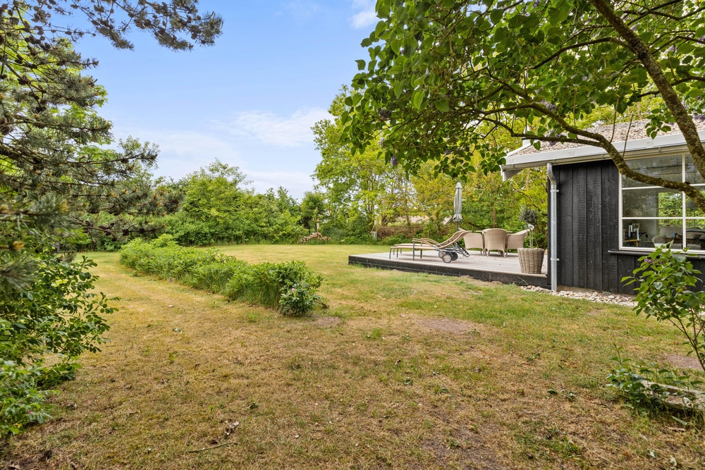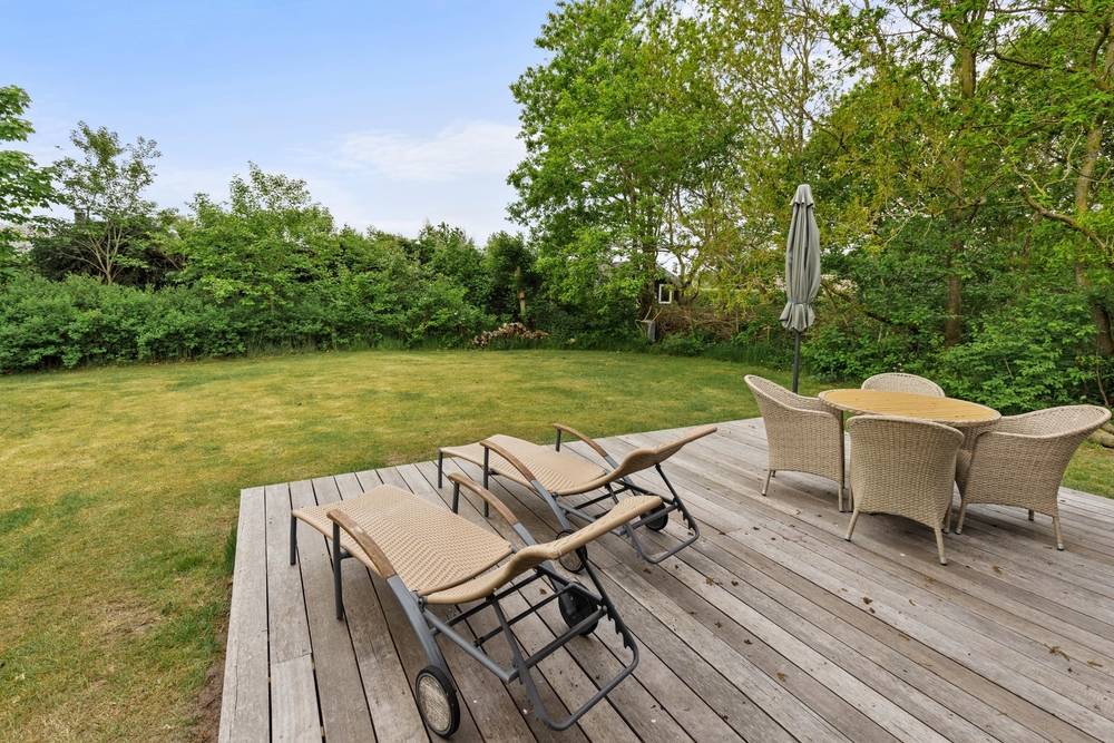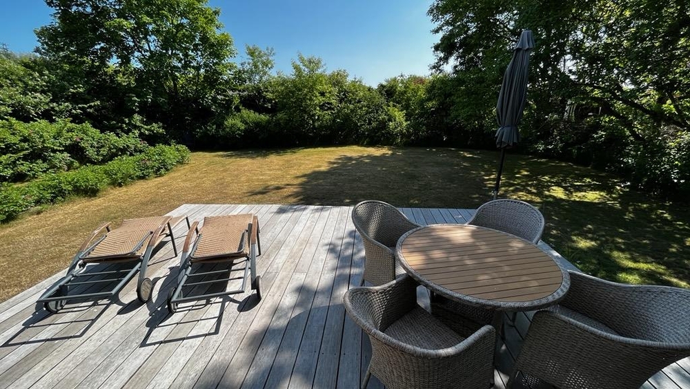 Das Ferienhaus liegt auf einem großzügigen Naturgrundstück, das von viel Grün umgeben ist. Hier könnt ihr morgens die frische Luft genießen, euren Kaffee auf der Terrasse trinken und dem Gesang der Vögel lauschen, während ihr die Ruhe des Ortes auf euch wirken lasst. Der Garten bietet zahlreiche Möglichkeiten zur Entspannung: Entspannt euch in den gemütlichen Gartenmöbeln oder legt euch auf die Sonnenliegen, um mit einem guten Buch die Sonne zu genießen und neue Energie zu tanken.