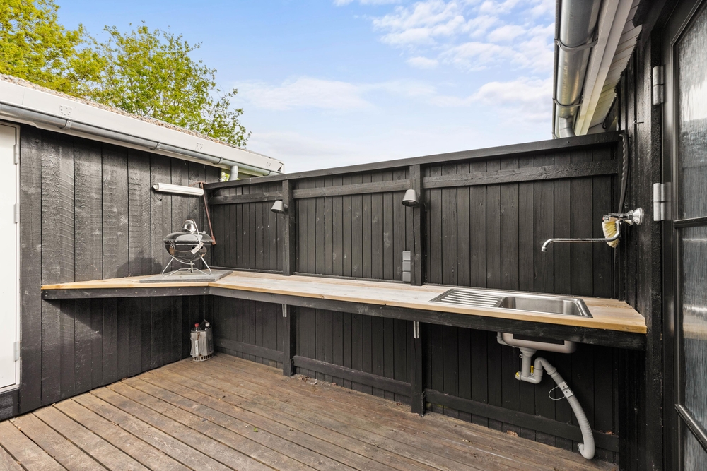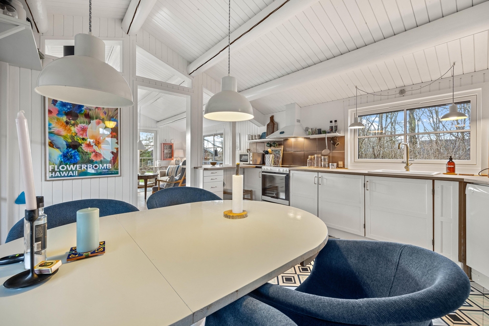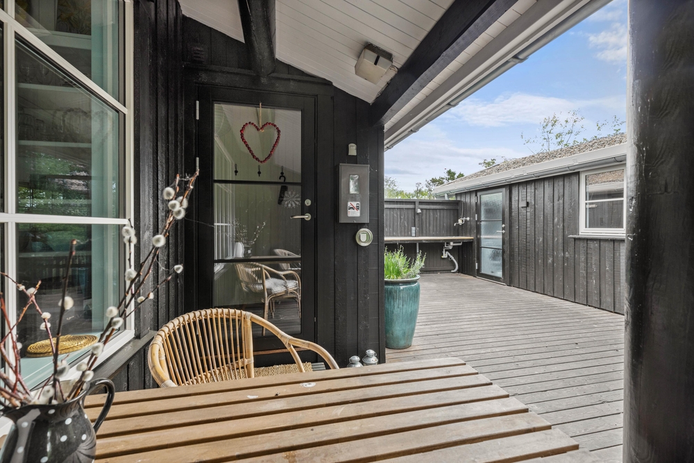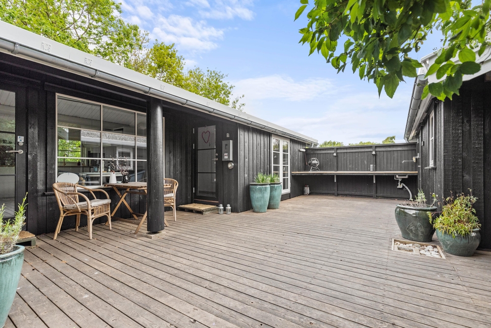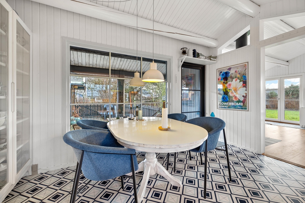 Nahe dem Ortskern von Bork Havn, in Tues Drøwt 44, erwartet euch dieses schöne Ferienhaus für 5 Personen. Besonders hervorzuheben ist der separate Anneks, der mit 2 Schlafplätzen und einem eigenen Bad ausgestattet ist. Dieser bietet den älteren Kindern oder anderen Familienmitgliedern die Möglichkeit, sich zurückzuziehen, während sich der Rest der Familie in den beiden weiteren Schlafzimmern des Ferienhauses einrichtet.
