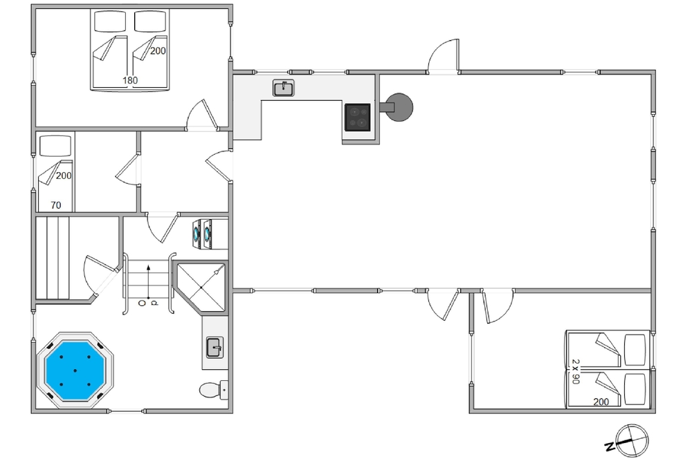 Insgesamt stehen euch 3 Schlafzimmer zur Verfügung. Zwei davon jeweils mit Doppelbett sowie ein Zimmer mit einem Einzelbett. Gerade Familien mit Kindern werden erleichtert über das Vorhandensein von sowohl Geschirrspüler, Waschmaschine als auch einem Wäschetrockner sein. Lasst euch eure freien Tage nicht von der Arbeit im Haushalt trüben, sondern nutzt diese Helfer und verbringt stattdessen entspannende Momente miteinander.