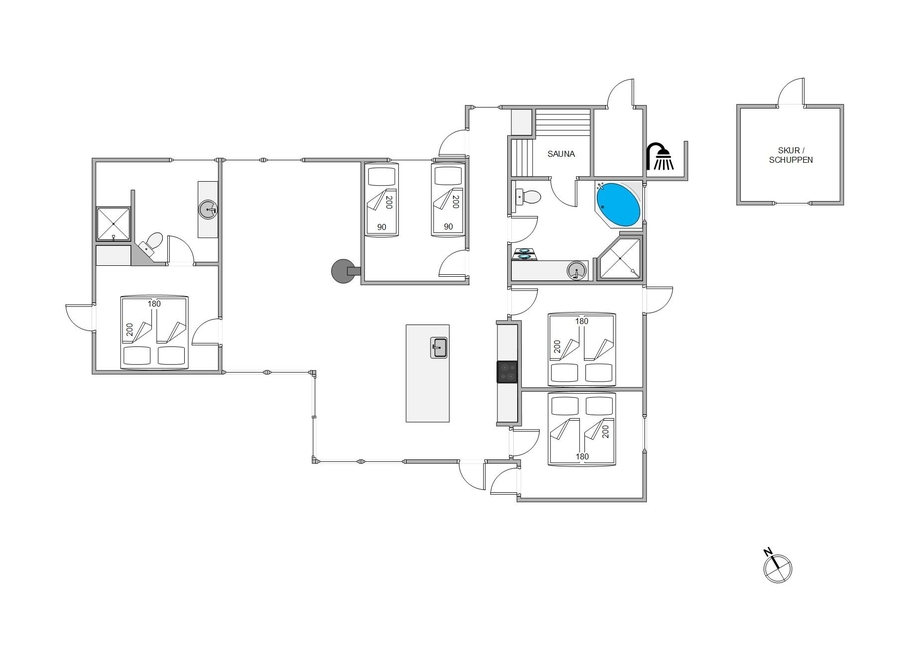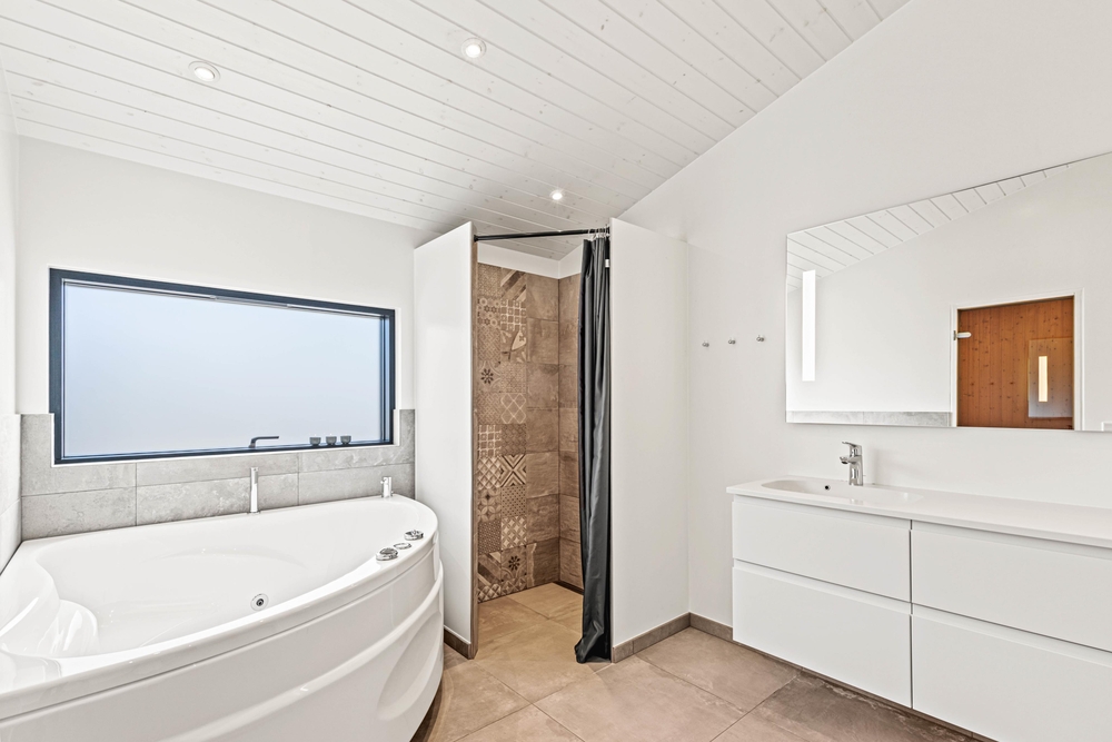 Um ein Schlangestehen am Morgen zu vermeiden, gibt es gleich 2 geschmackvolle Bäder, in diesem gut ausgestatteten Ferienhaus. Im größeren Bad findet ihr, mit Sauna und Whirlpool, eure eigene Wellnessabteilung vor. Hier könnt ihr ausgiebige Saunagänge und Bäder im warmen Wasser genießen und den Alltagsstress hinter euch lassen.