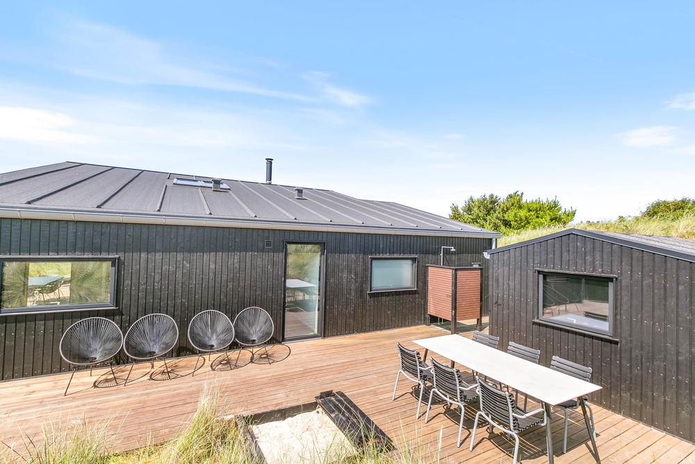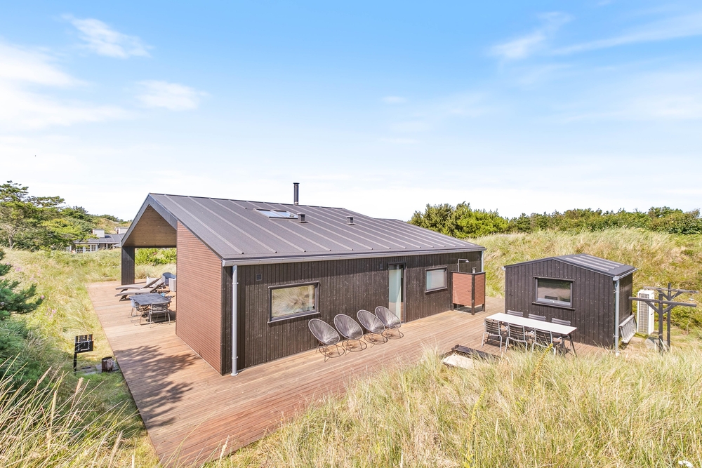 Euer modernes Ferienhaus liegt auf einem schönen Dünengrundstück, deren sanfte Hügel euch zugleich als Sicht- und Windschutz dienen. Auf mehreren Seiten ist euer Ferienhaus von einer Terrasse, mit bequemen Gartenmöbeln und Sonnenliegen, umgeben. So könnt ihr, je nach Windrichtung und Sonnenstand, den Platz wechseln.