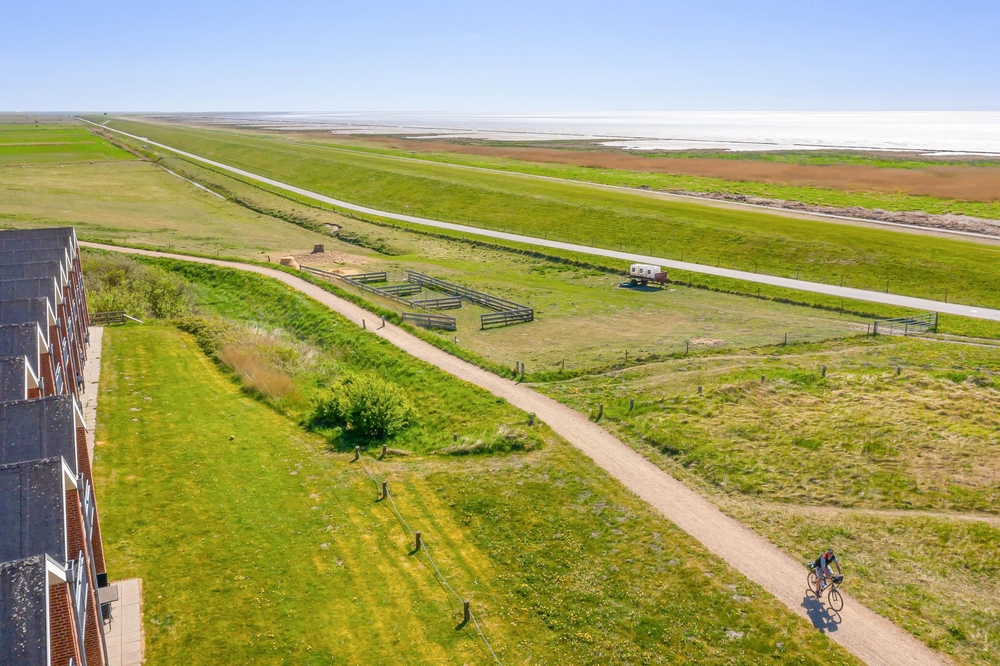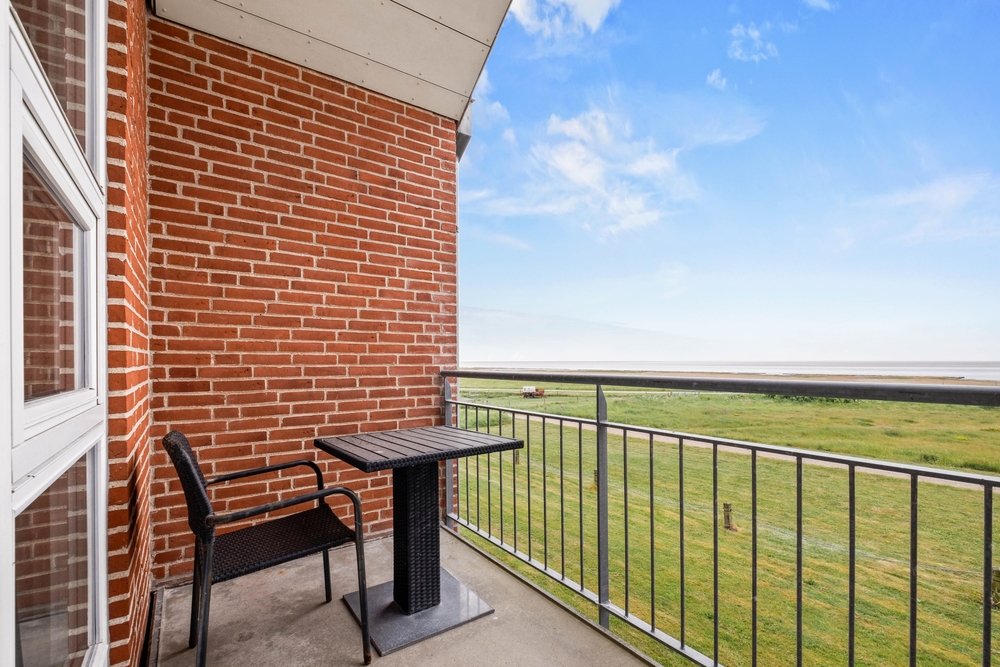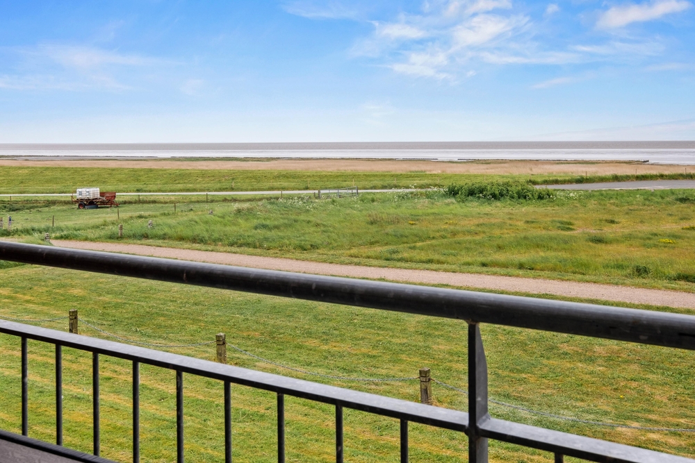 Erstmal auf dem Balkon angekommen, habt ihr einen sensationellen Blick in die Ferne über das Wattenmeer.