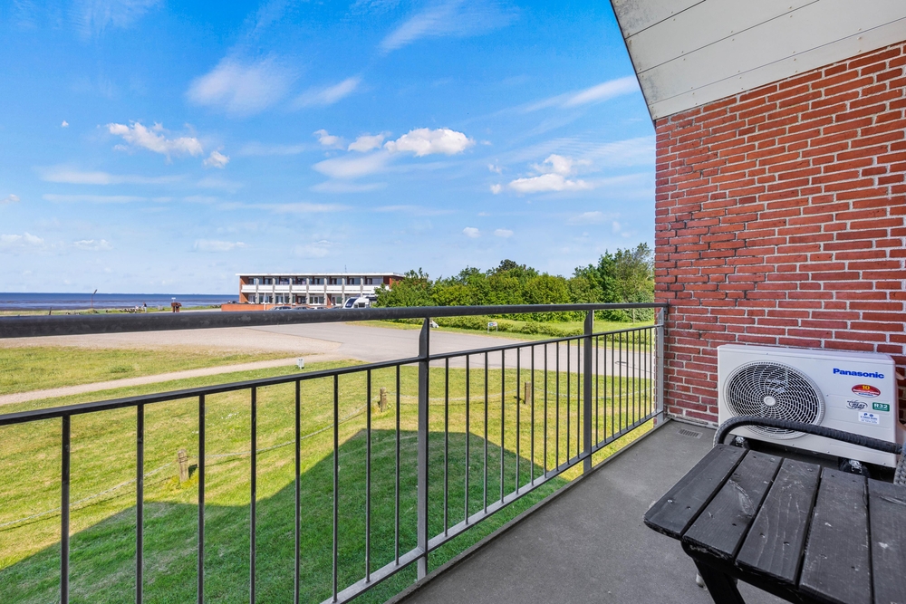 Geheizt wird in der Ferienwohnung mit einer energiesparenden Wärmepumpe. So könnt ihr schnell und einfach eure Wohlfühltemperatur einstellen. Über eine Treppe gelangt ihr in die 1. Etage. Hier befindet sich das einladende Wohnzimmer mit Schlafcouch und Fernseher. Vom Balkon aus könnt ihr die Panoramaaussicht Richtung Wattenmeer genießen. Hier könnt ihr am Abend ein Glas Wein trinken und euch den einmalig schönen Sonnenuntergang anschauen.