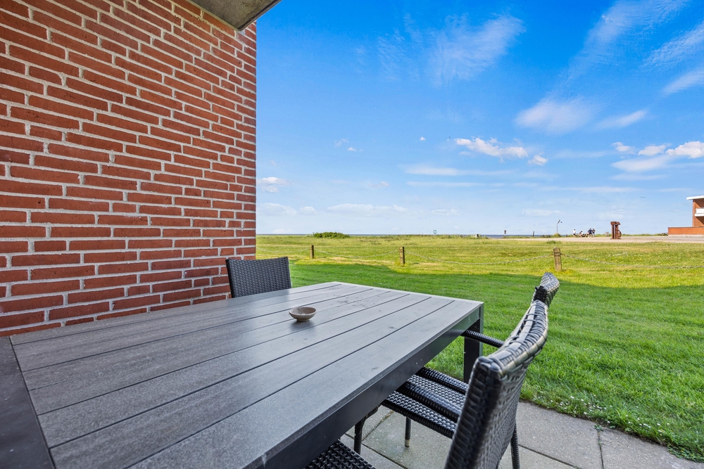 Von der Küche aus gelangt ihr auf die überdachte Terrasse eurer Ferienwohnung. Selbst, wenn es mal einen Regenschauer gibt, könnt ihr hier verweilen und die frische Meeresluft genießen. Lehnt euch in den Gartenmöbeln zurück, lasst den Blick über die Weite Richtung Nordsee schweifen und vergesst euren Alltagsstress.