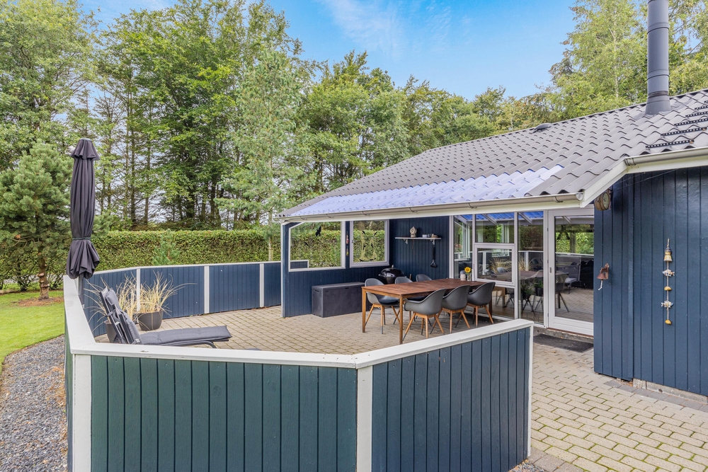Nicht nur der Innenbereich des Ferienhauses in Bork Havn verspricht Entspannung ? auch der Außenbereich lädt zum Genießen ein. Lass die Seele baumeln auf der abgeschirmten oder überdachten Terrasse und genieße gesellige Grillabende auf den vorhandenen Gartenmöbeln. Dein vierbeiniger Freund ist hier ebenfalls willkommen, denn Hunde sind erlaubt, allerdings auf maximal einen beschränkt. Der gepflegte und schön angelegte Garten bietet genug Platz zum Toben und Entdecken.