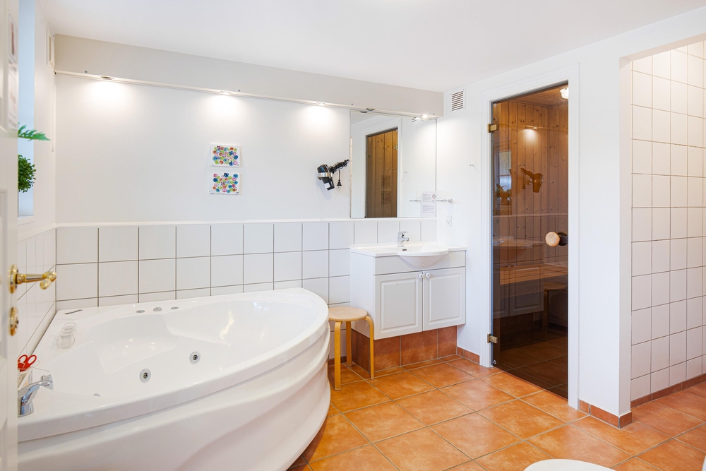 Eine besonders schöne Art der Erholung bietet der Whirlpool des Ferienhauses. Dort könnt ihr euch im heißen sprudelnden Wasser zurücklehnen und einfach die Gedanken schweifen lassen. Genauso verspricht auch die Saune vollkommene Entspannung und macht es euch einfach, eure Batterien wieder aufzuladen.