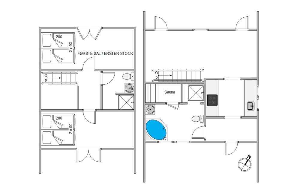 Es sind zwei Badezimmer in diesem Haus vorhanden, damit es zur Morgentoilette kein Gedränge gibt. Beide Bäder verfügen über eine Fußbodenheizung.