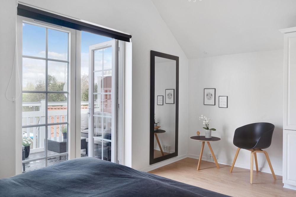 Die beiden Schlafzimmer sowie ein weiteres Badezimmer liegen im Obergeschoss. Eine besonderes Highlight ist die an das Schlafzimmer angrenzende Terrasse, von welcher ihr einen schönen Blick habt und wo ihr schon morgens euren ersten Kaffee geniessen könnt.