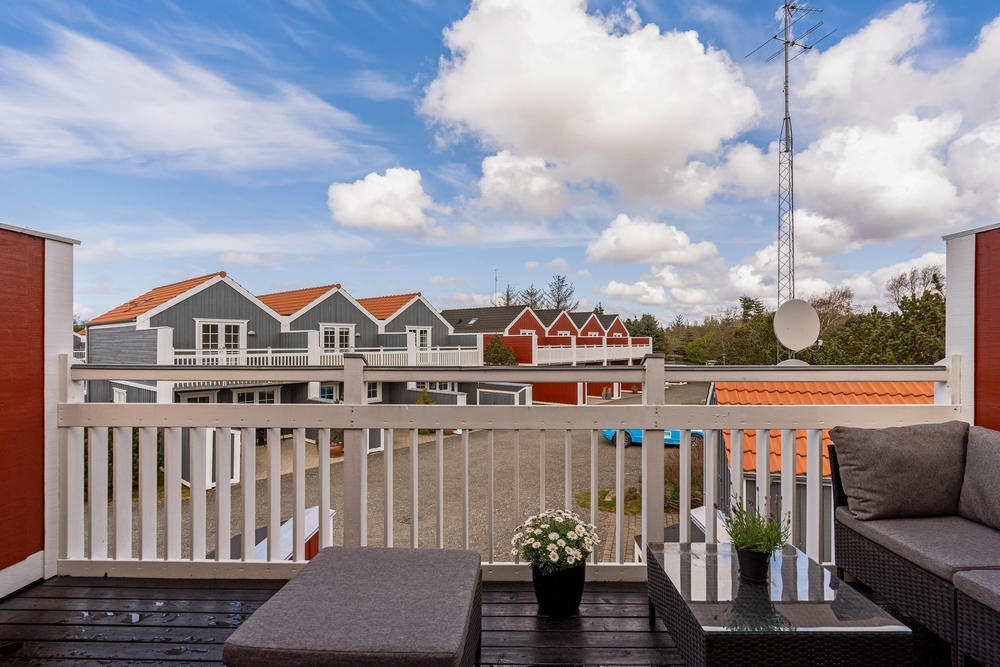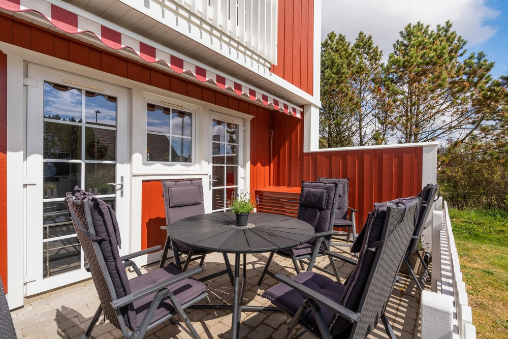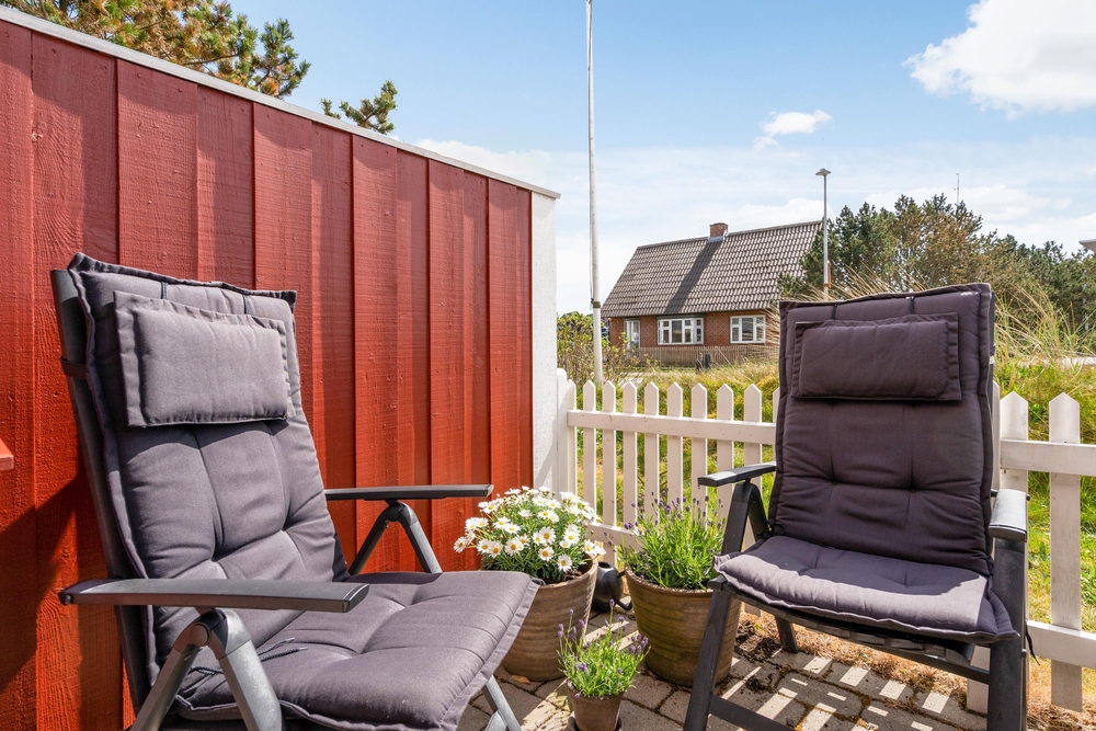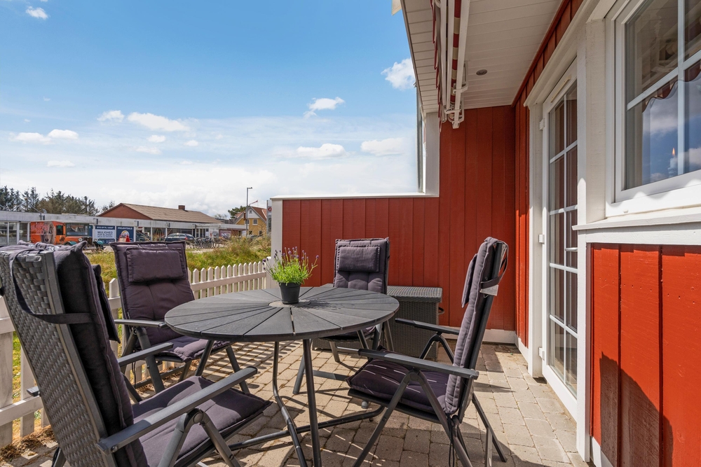 Die teilweise überdachte Terrasse bietet euch die Möglichkeit, im Freien zu sitzen, zu Grillen und gleichzeitig dem Treiben Blåvands zuzuschauen.