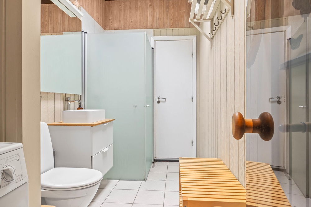 Im geräumigen Badezimmer des Ferienhauses, welches mit einer Fußbodenheizung ausgestattet ist, steht euch noch eine Waschmaschine zur Verfügung. Außerdem befindet sich hier auch eines der Highlights des Ferienhauses ? die Sauna. Nach einem schönen, ereignisreichen Tag wird euch die angenehme Saunawärme richtig guttun.