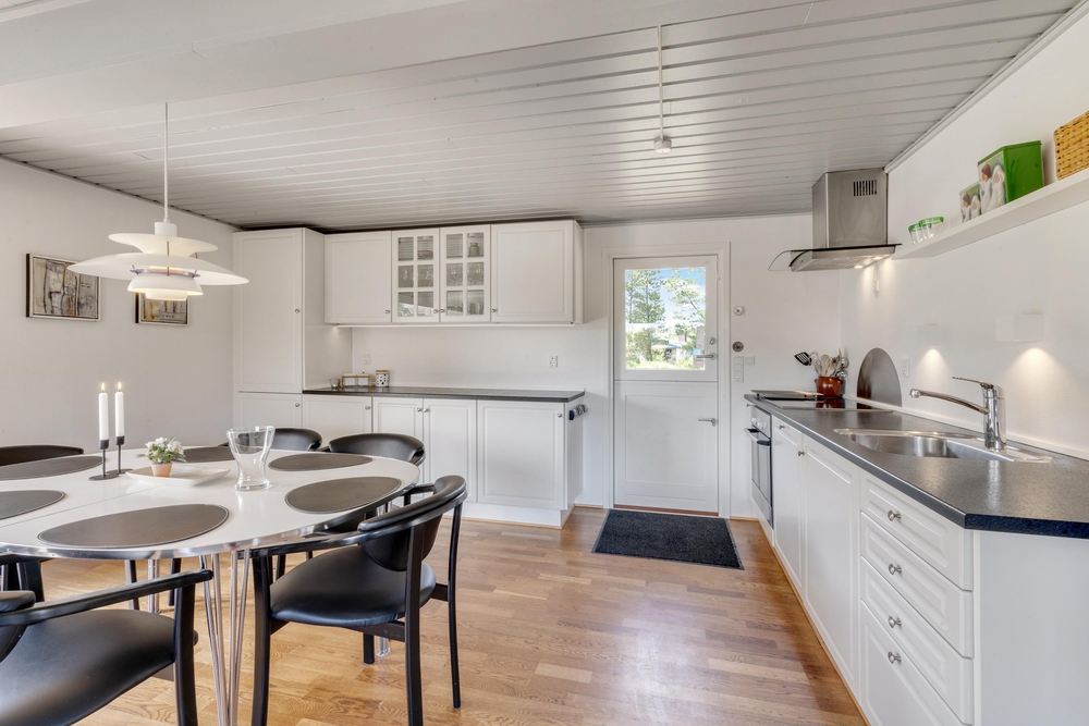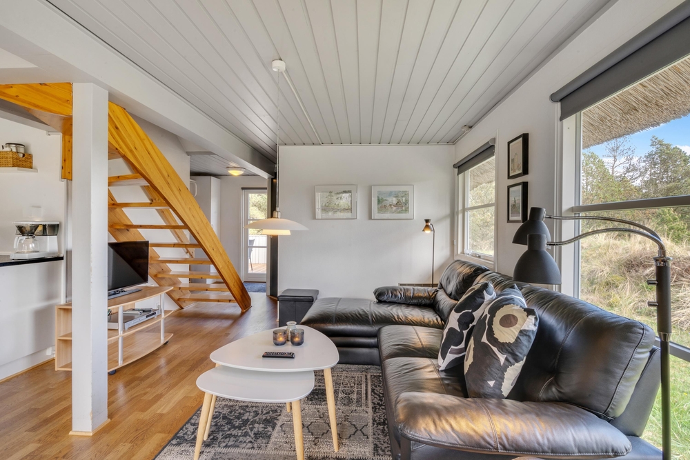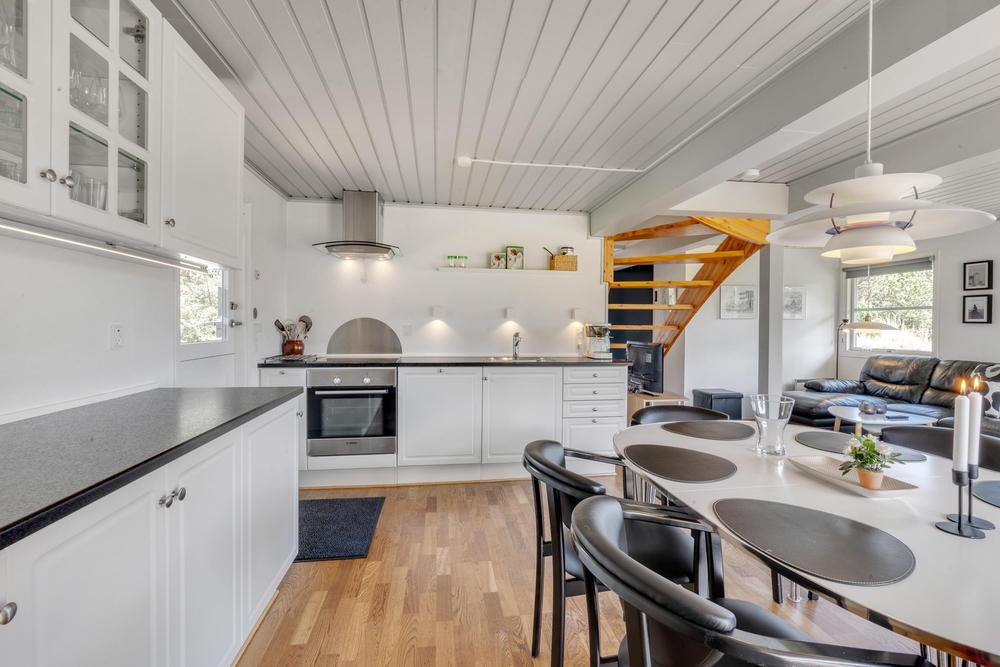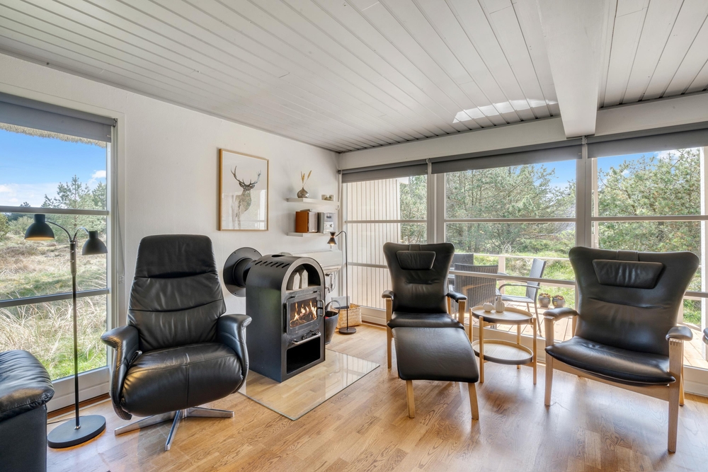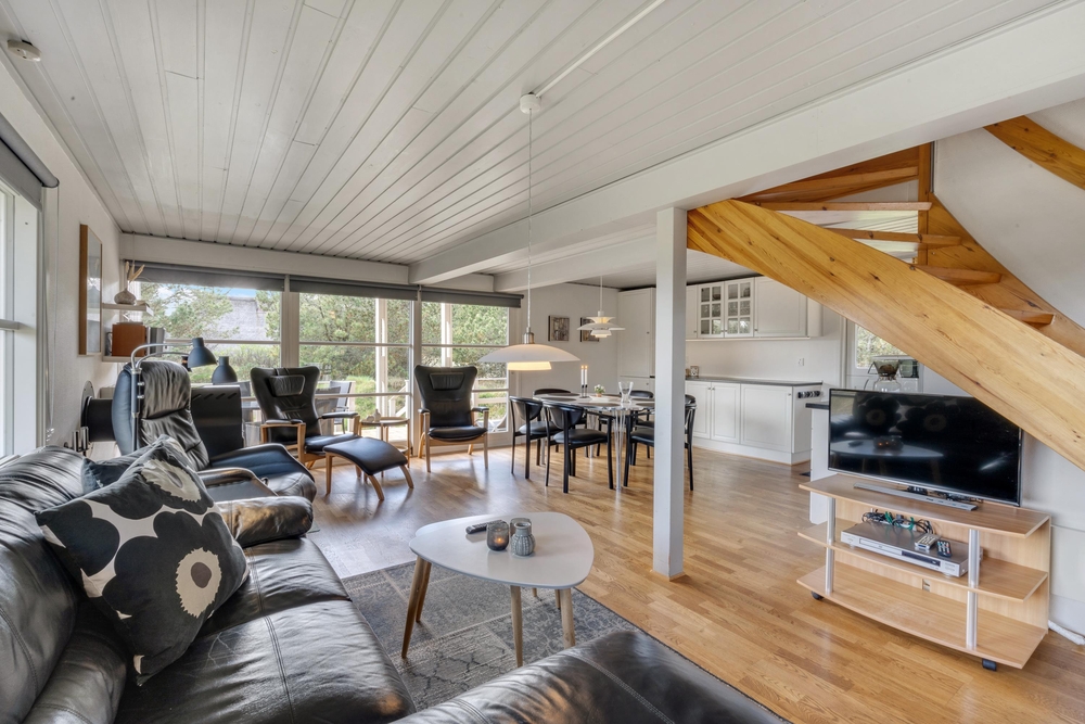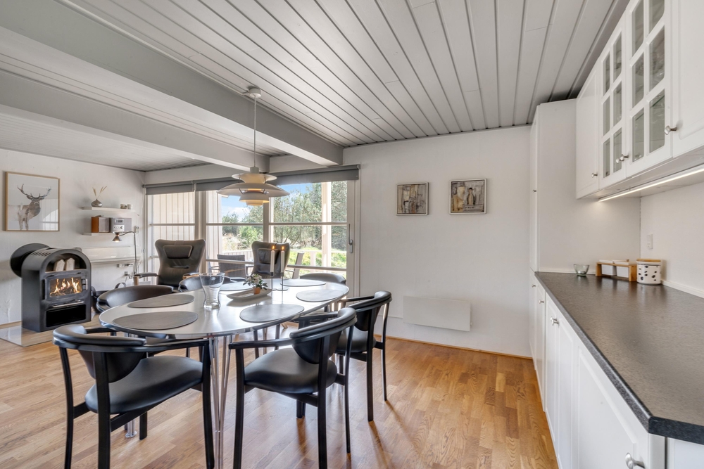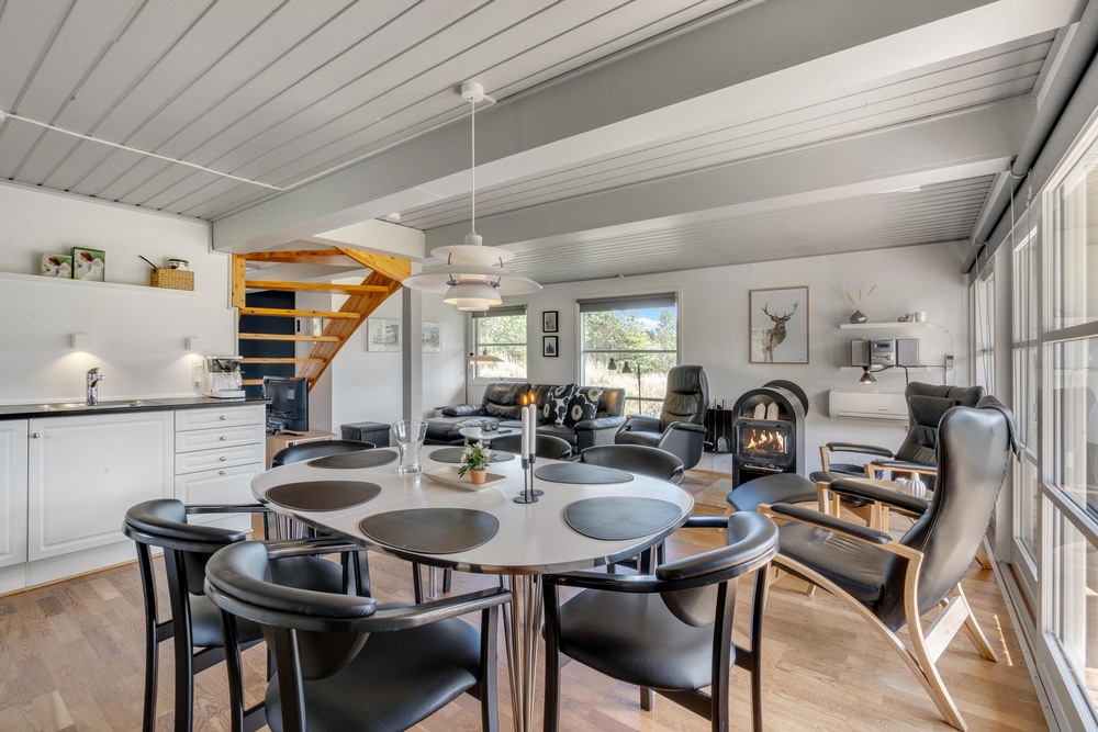 Ob ein entspannter Familienurlaub oder eine gemeinsame Auszeit mit Freunden ? das Ferienhaus Ved Skoven 5 heißt euch willkommen mit seiner hellen und freundlichen Atmosphäre. Die großen Fenster bieten eine tolle Aussicht auf den wilden Naturgrund, der das Haus umgibt. Das Herzstück ist der offene Wohn- und Essbereich, der gemütliche Stunden mit gemeinsamen Mahlzeiten, Spiele- oder Filmabenden mit knisterndem Kaminofen im Hintergrund verspricht. Auch die hauseigene Sauna lädt zum entschleunigten Wohlfühlen und gemeinsamen Entspannen ein.