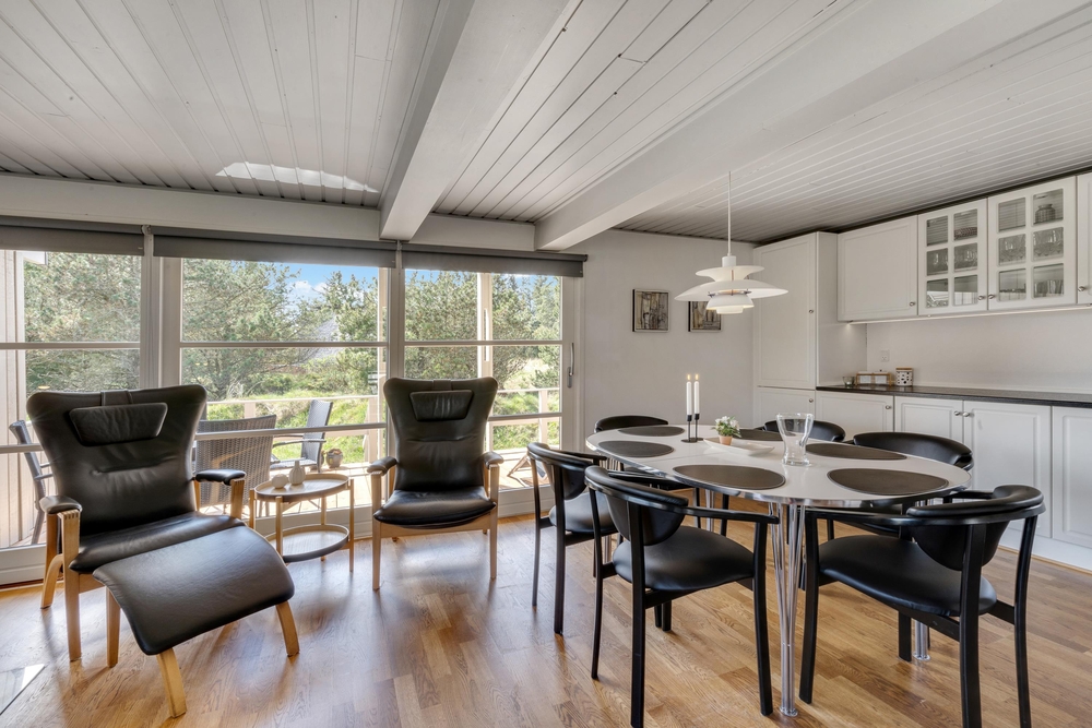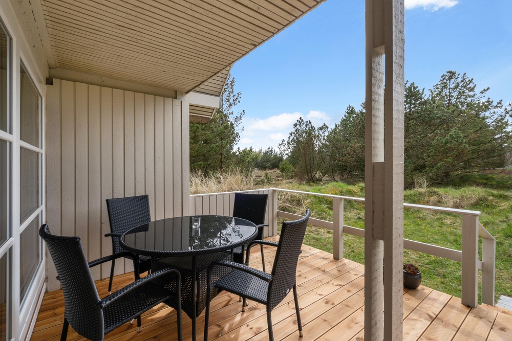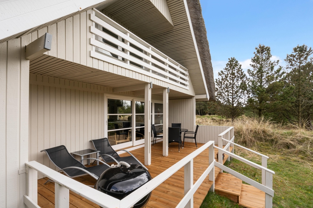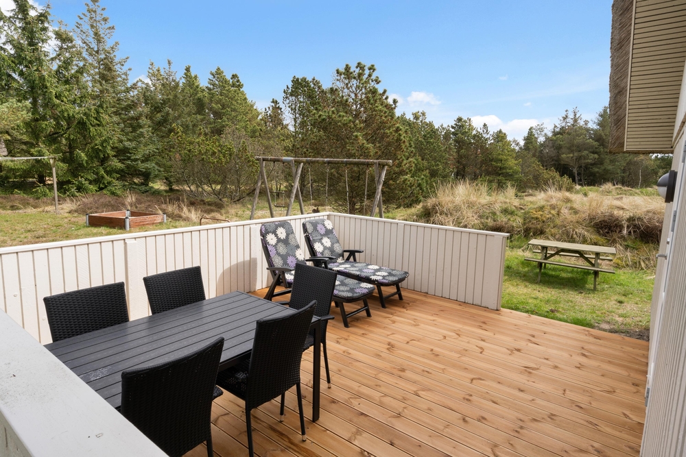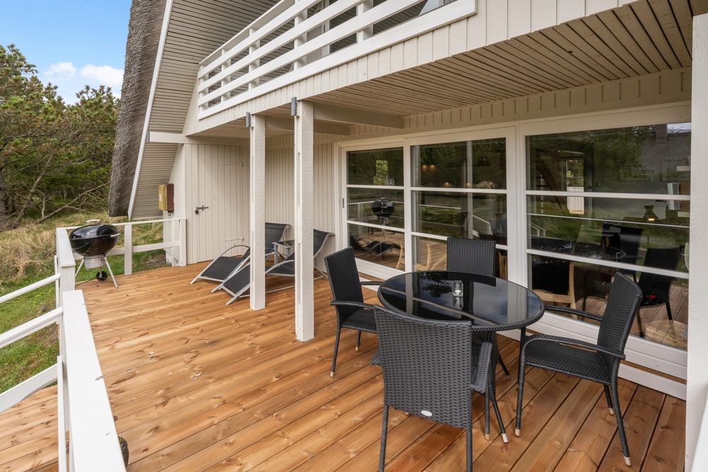Im Ferienhaus Ved Skoven 5 verschmilzen Drinnen und Draußen auf besonders charmante Weise, aufgrund der Panoramafenster im Wohnbereich und zum Balkon könnt ihr euch auch drinnen der Natur sehr nah fühlen, die drei Terrassen bieten euch dagegen bei jedem Wetter die Möglichkeit, draußen eine Tasse Kaffee zu trinken, je nach Wunsch in der Sonne, im Schatten oder windgeschützt.