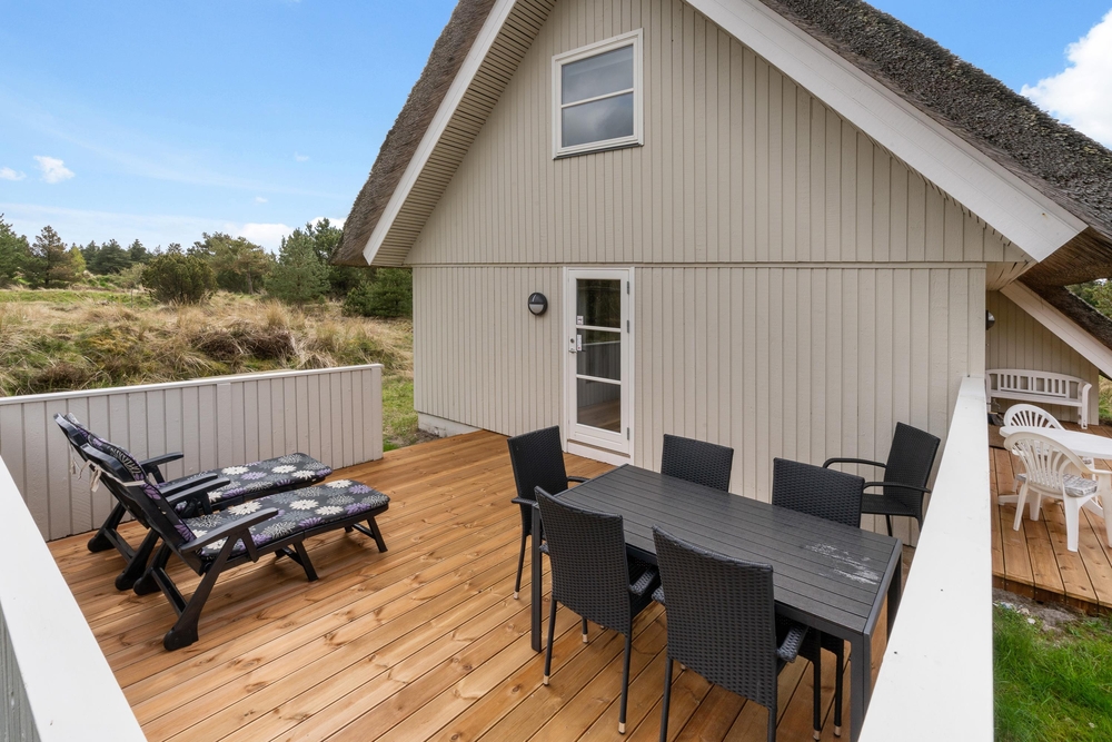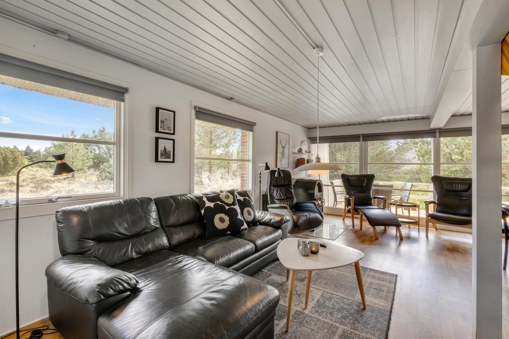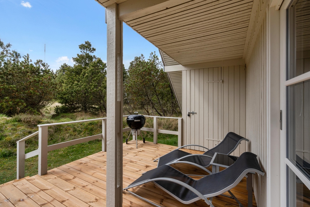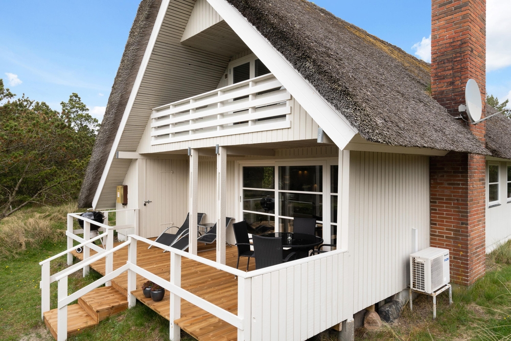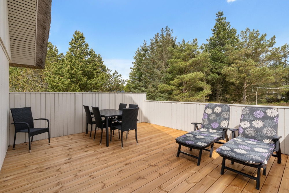Im Ferienhaus Ved Skoven 5 verschmilzen Drinnen und Draußen auf besonders charmante Weise, aufgrund der Panoramafenster im Wohnbereich und zum Balkon könnt ihr euch auch drinnen der Natur sehr nah fühlen, die drei Terrassen bieten euch dagegen bei jedem Wetter die Möglichkeit, draußen eine Tasse Kaffee zu trinken, je nach Wunsch in der Sonne, im Schatten oder windgeschützt.