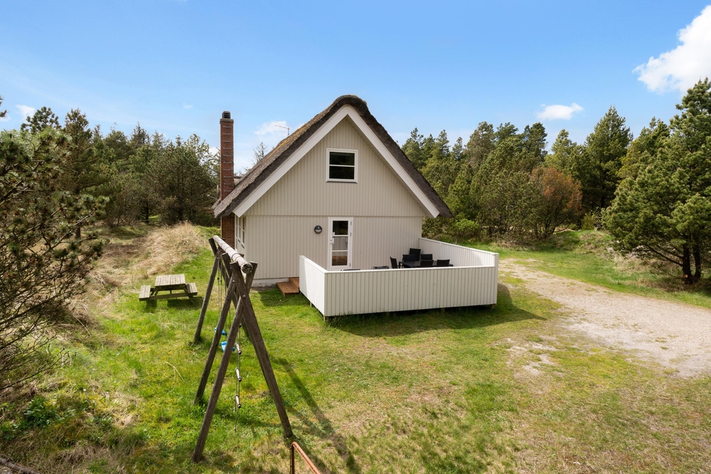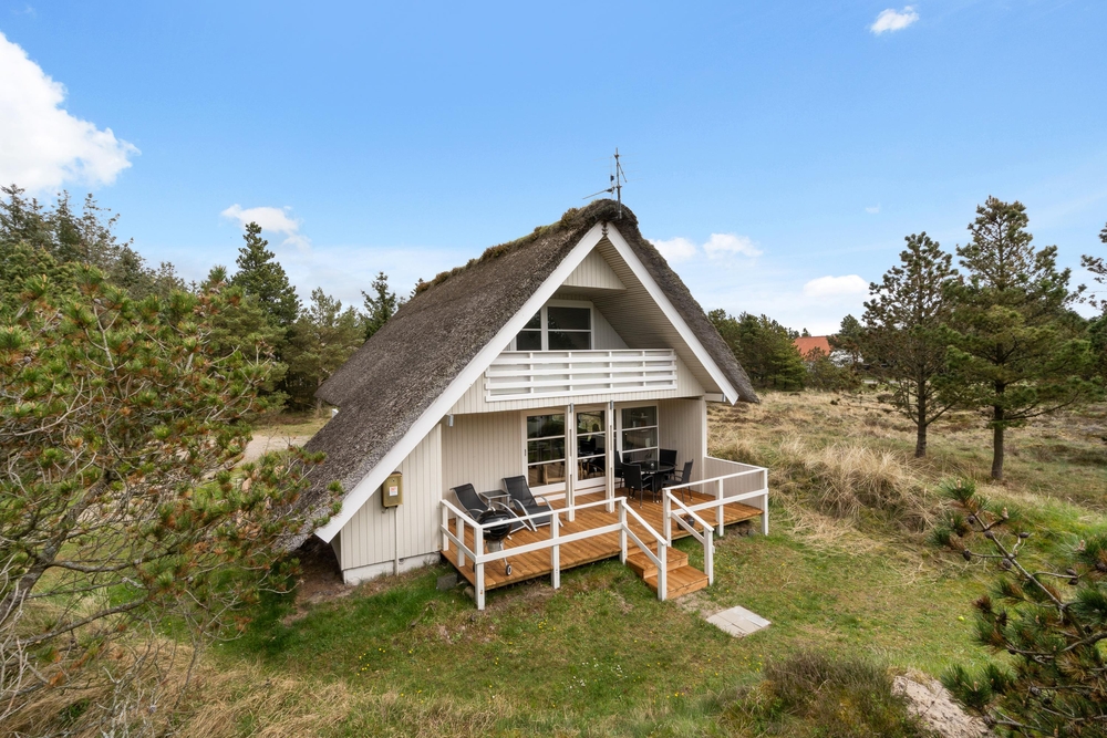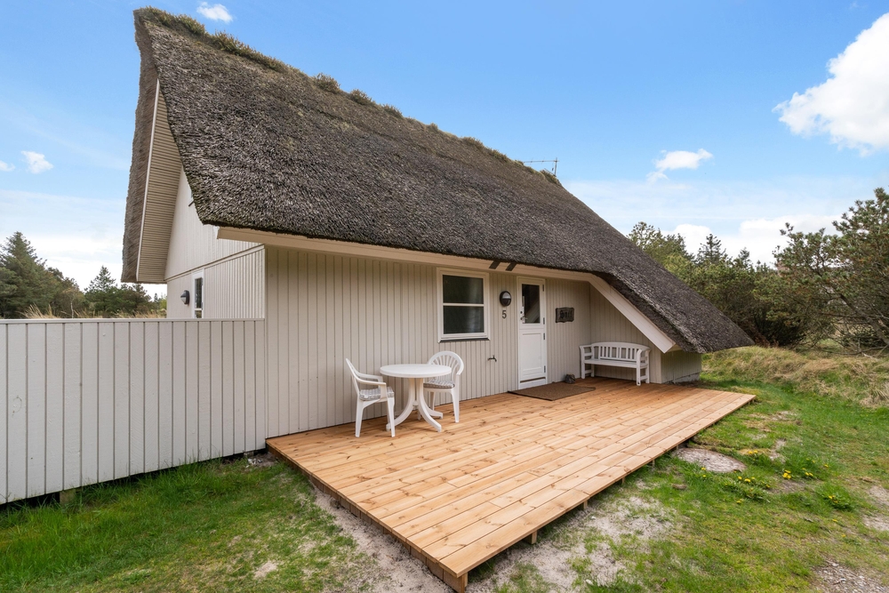 Dieses idyllische Ferienhaus Ved Skoven 5 liegt in Blåvand und bietet Platz für 6 Personen auf zwei Etagen. Auch ein Hund ist hier herzlich willkommen. Auf einem schönen Naturgrund gelegen verfügt dieses urige Feriendomizil über nicht weniger als drei Terrassen und einen Balkon.