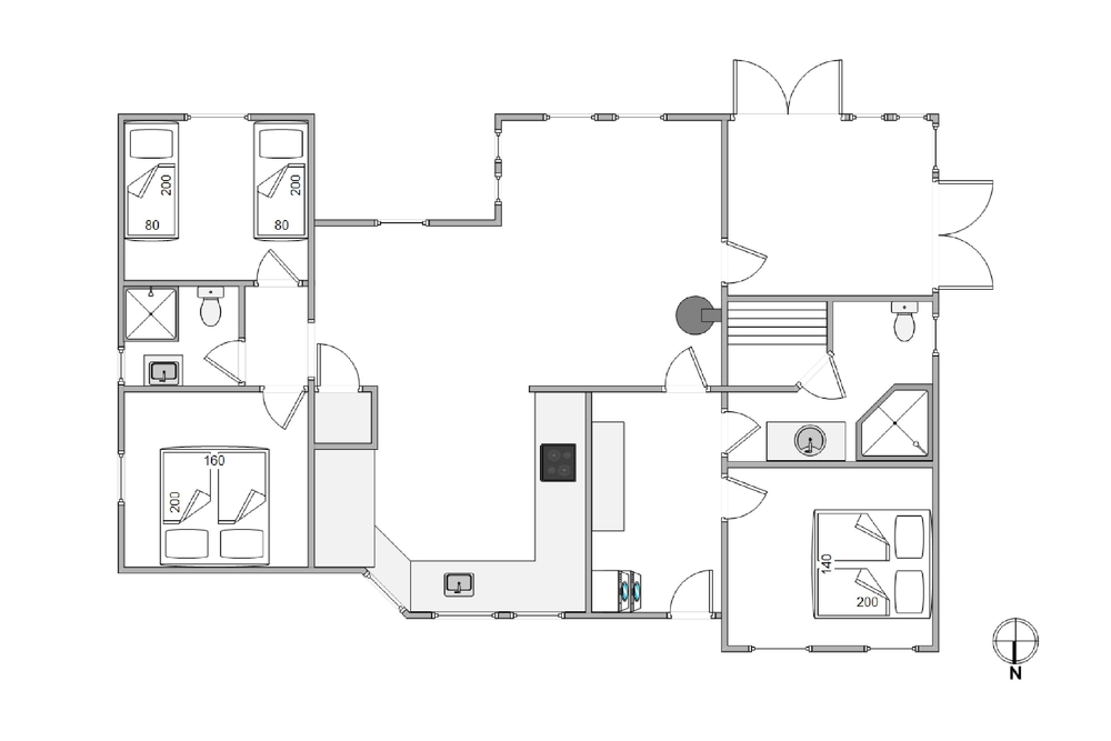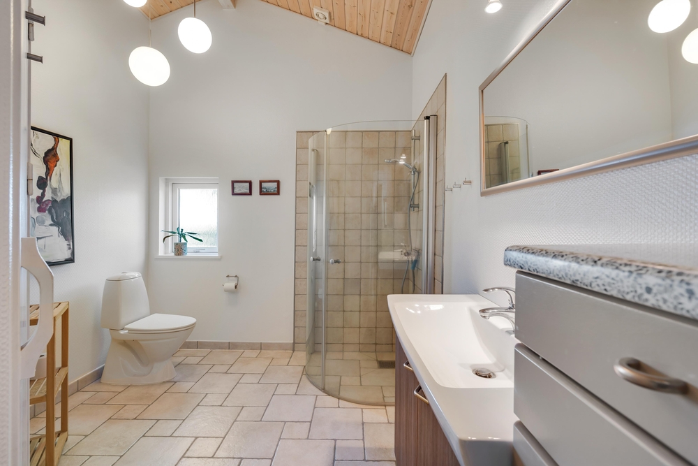 Das Ferienhaus verfügt über 2 Badezimmer, wovon eines mit Fußbodenheizung ausgestattet ist. Es gibt 3 Schlafzimmer, eines davon ist mit einem kleinen Fernseher ausgestattet.